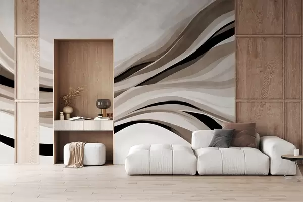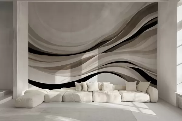 Fotomurales Líneas onduladas abstractas en tonos beige y negro sobre un fondo claro, arte texturizado. Nr. w09748