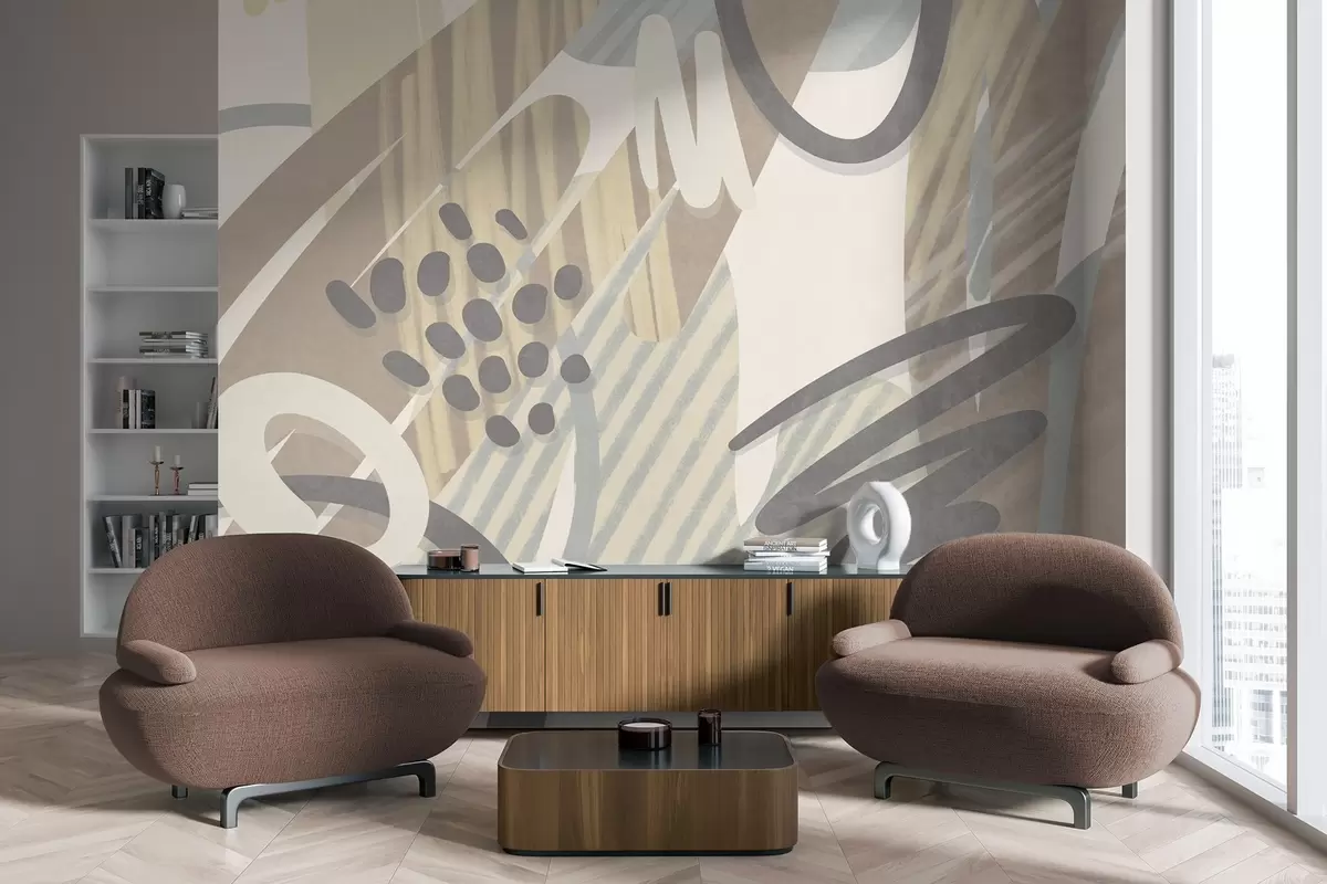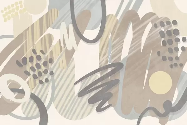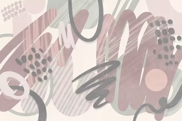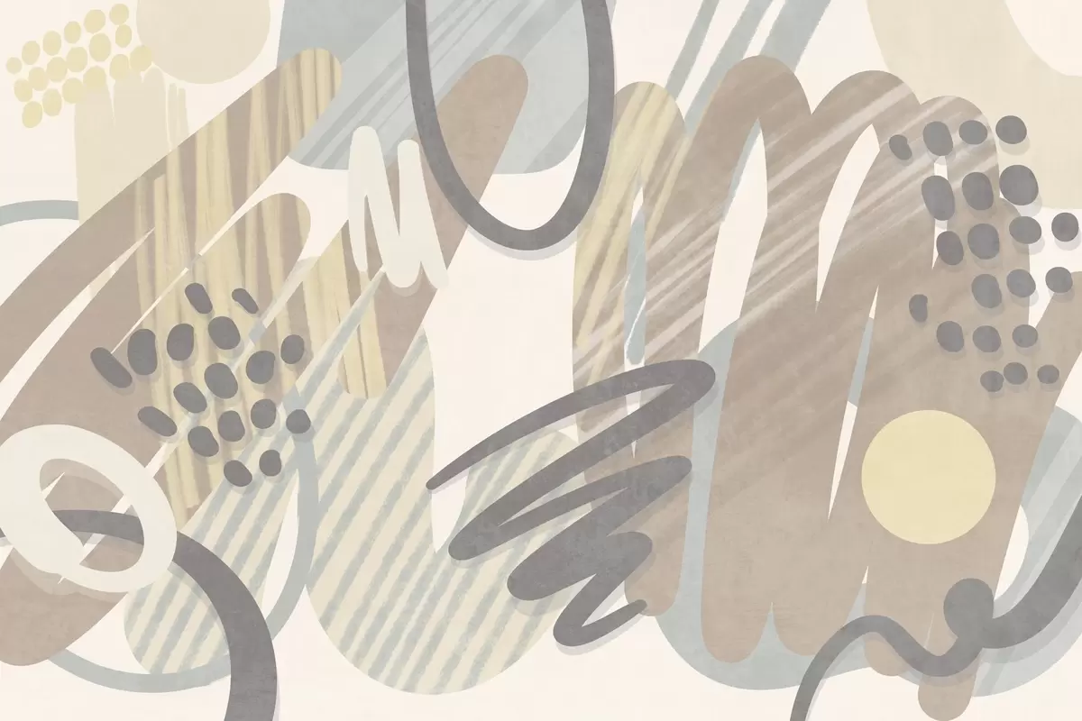 Fotomurales Estampado abstracto con texturas, formas orgánicas, garabatos y puntos en tonos pastel apagados Nr. w09774