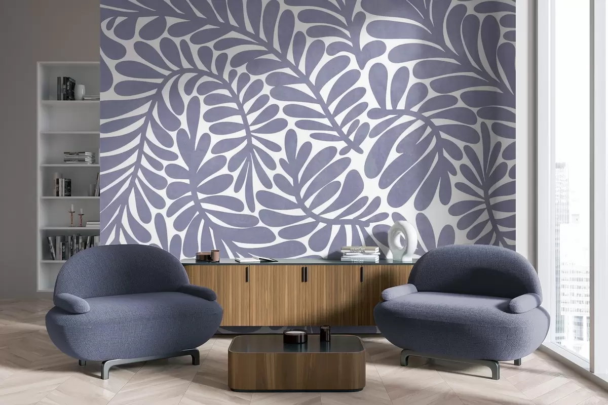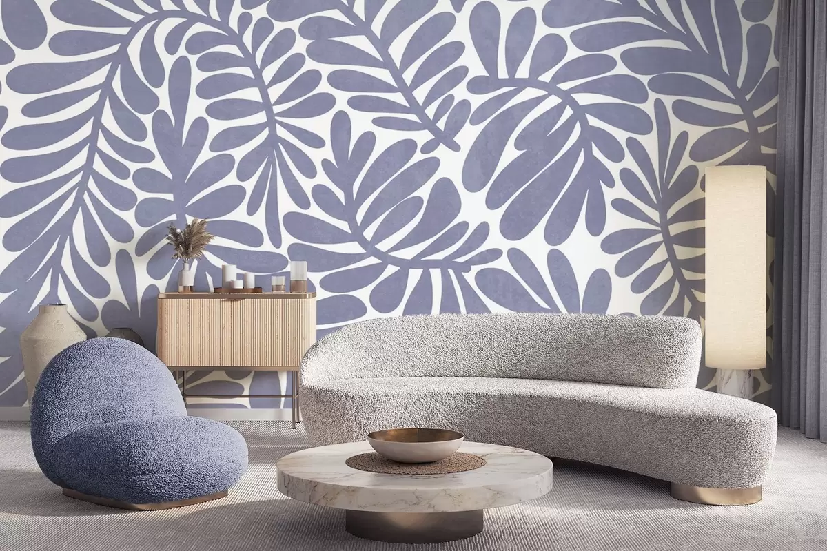 Fotomurales Hojas azul claro estilizadas sobre un fondo claro, ilustración con textura Nr. w09775v1