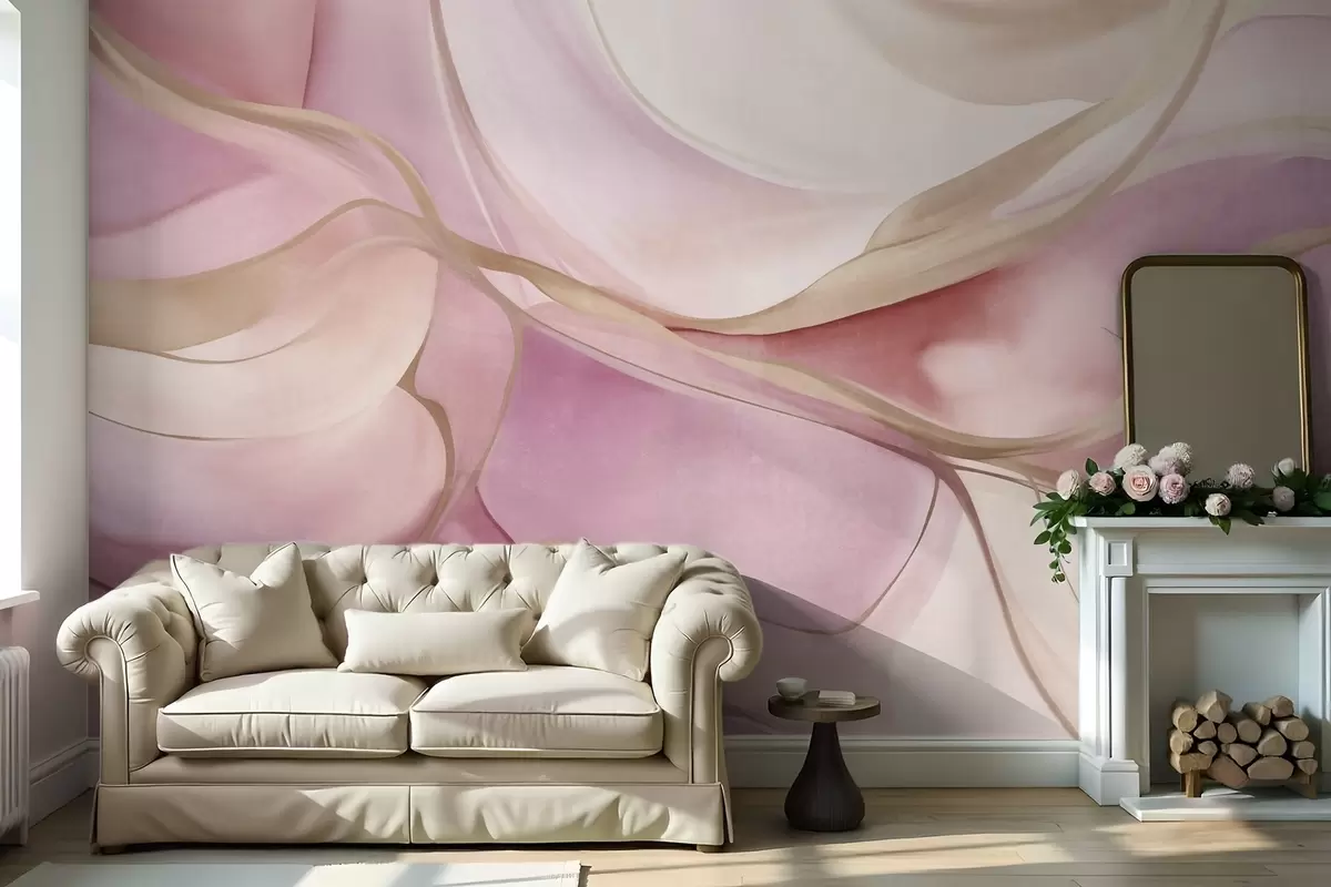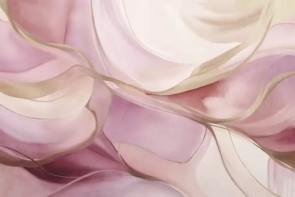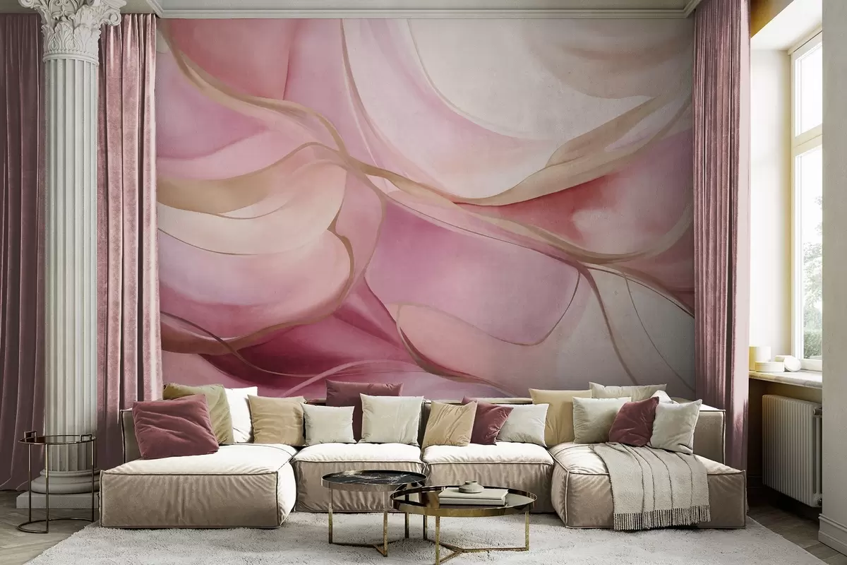 Fotomurales Formas fluidas con texturas abstractas en tonos rosa y beige, con delicadas líneas amarillas Nr. w09818