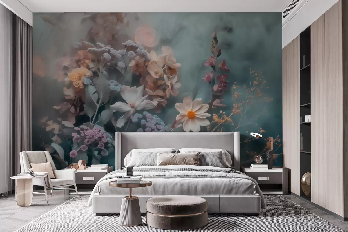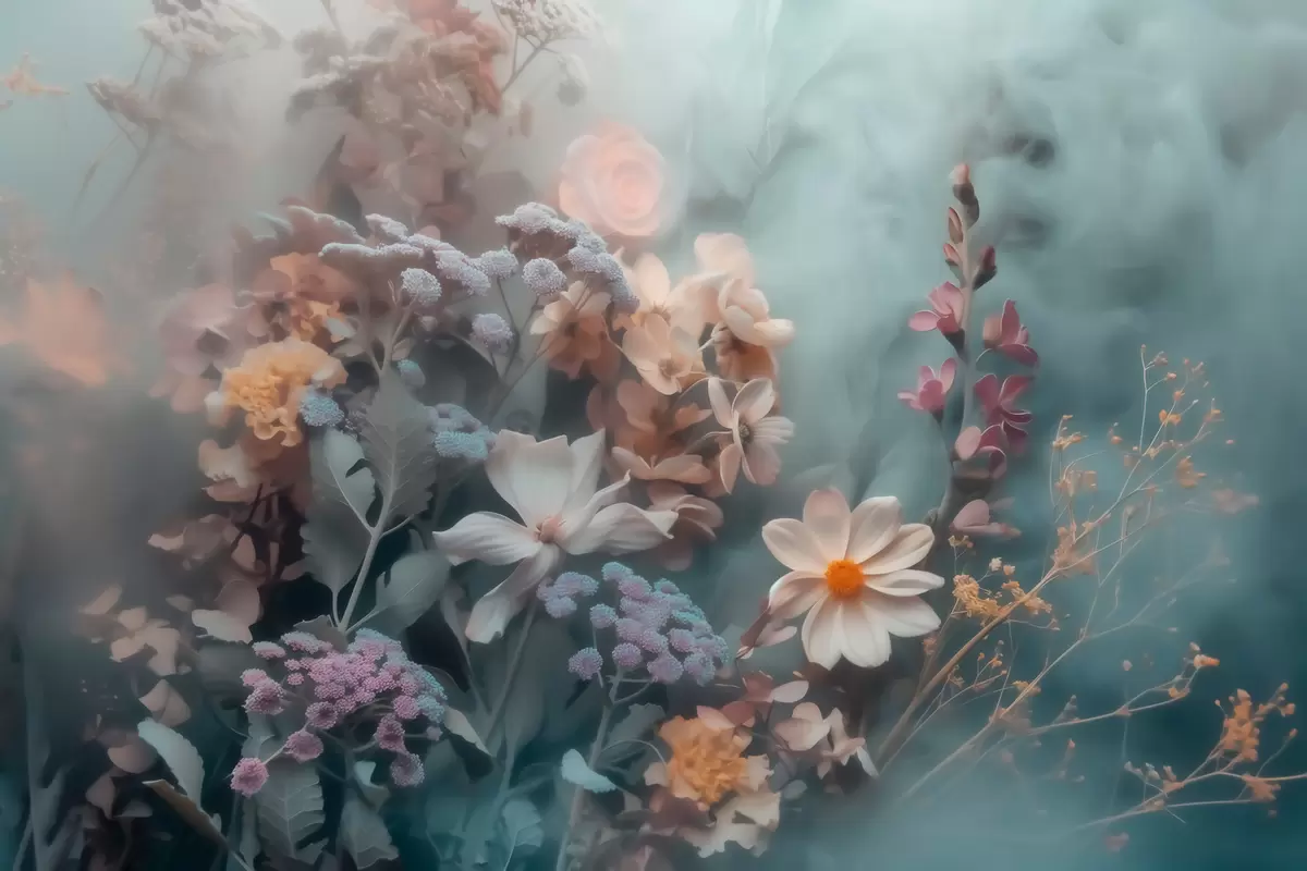 Fotomurales Una composición de ensueño de flores silvestres envuelta en una ligera bruma de tonos pastel Nr. w09846