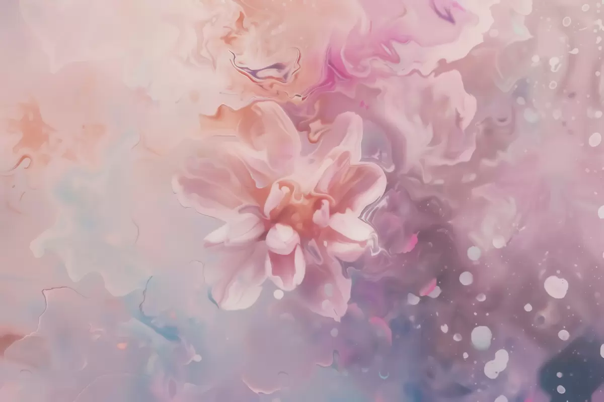 Fotomurales Una composición abstracta con una flor y suaves tonos rosados en estilo acuarela Nr. w09859