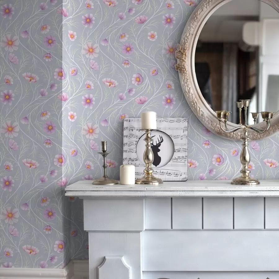 Claveles en polvo sobre fondo gris verdoso, estampado refinado