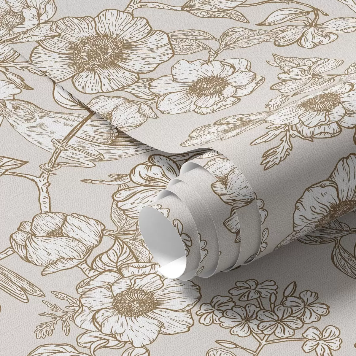 Papel pintado Pájaros pintados en ramas y flores Nr. a00017