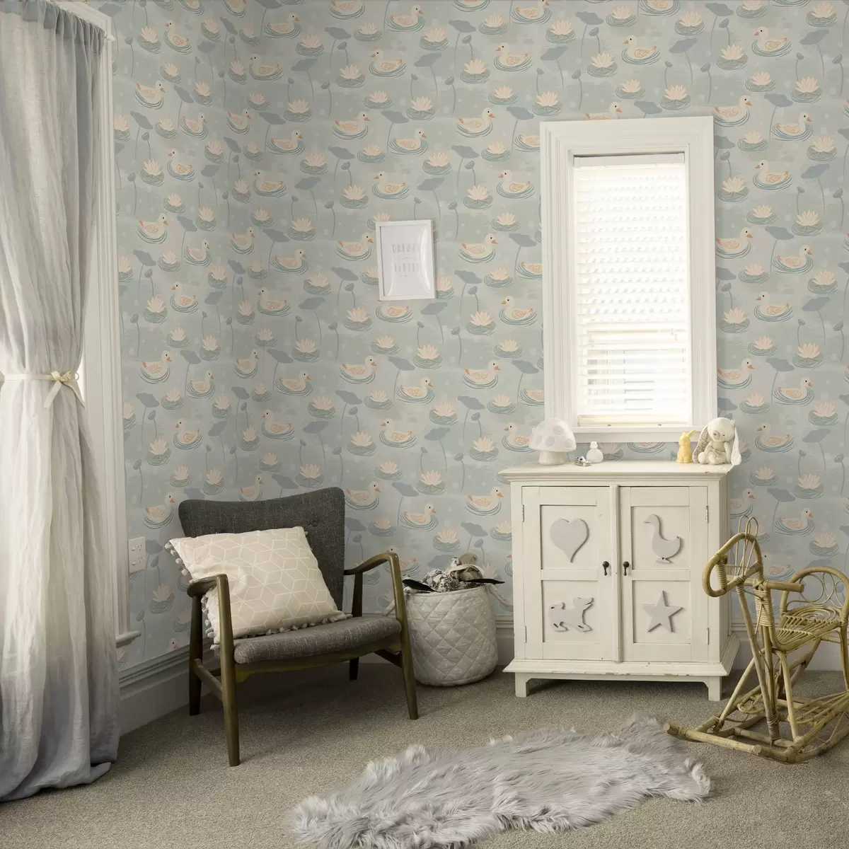 Papel pintado Patitos en un estanque con lotos Nr. a00079