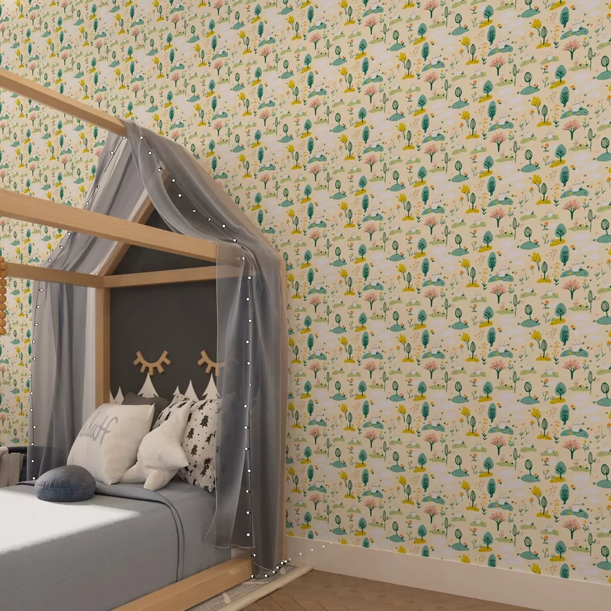 Papel pintado Árboles pequeños y conejos Nr. a00081