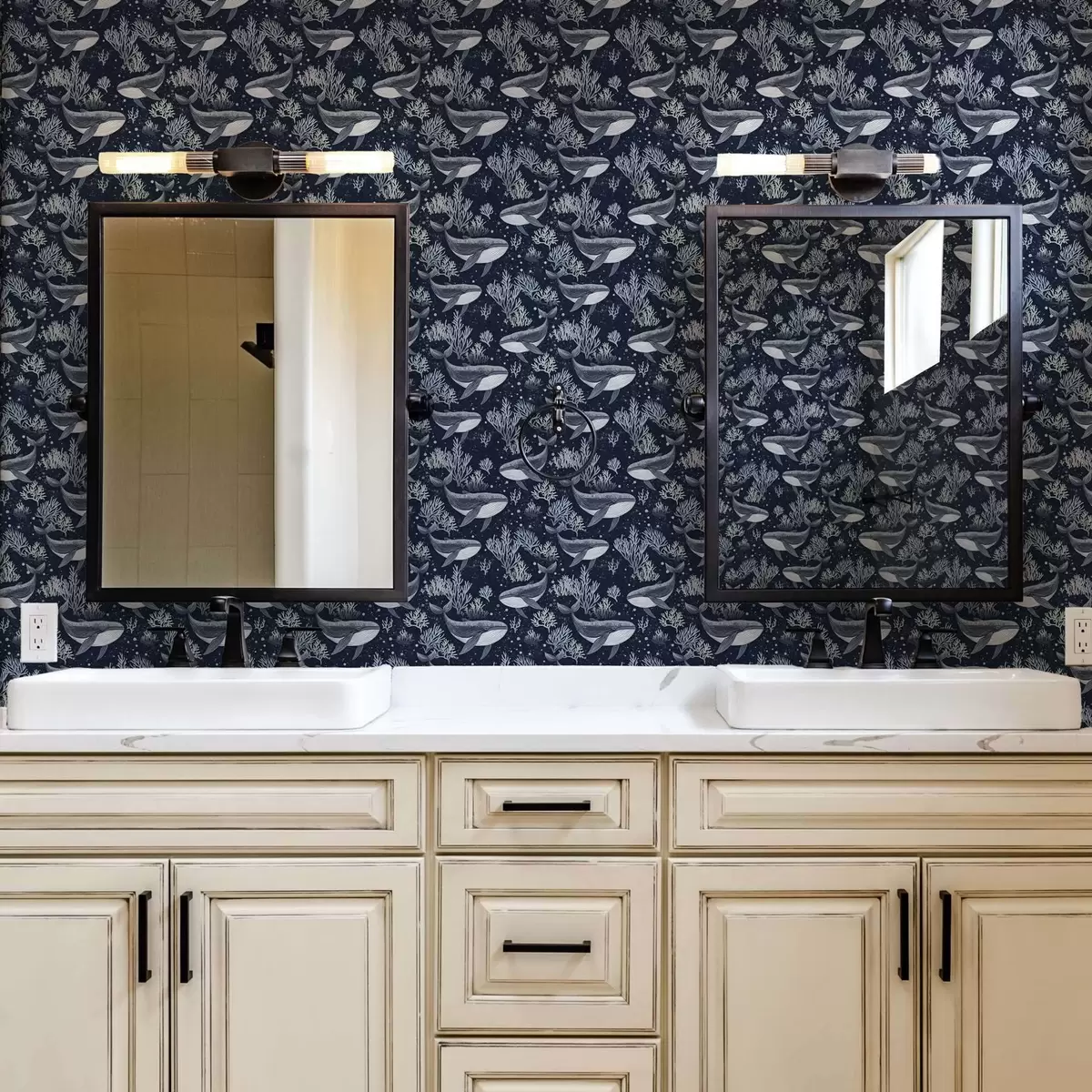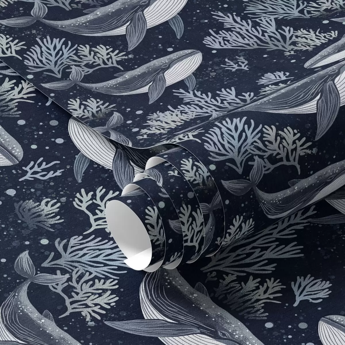 Papel pintado Ballenas y corales sobre fondo azul oscuro Nr. a00116v1