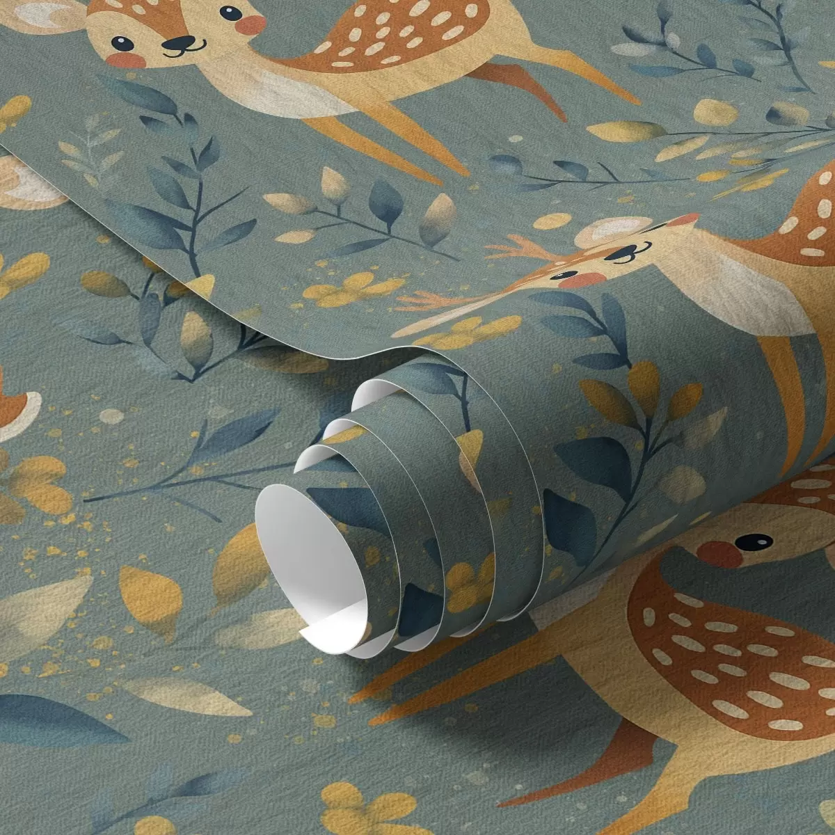 Papel pintado Cría de ciervo en el bosque con hojas amarillas Nr. a00124v1