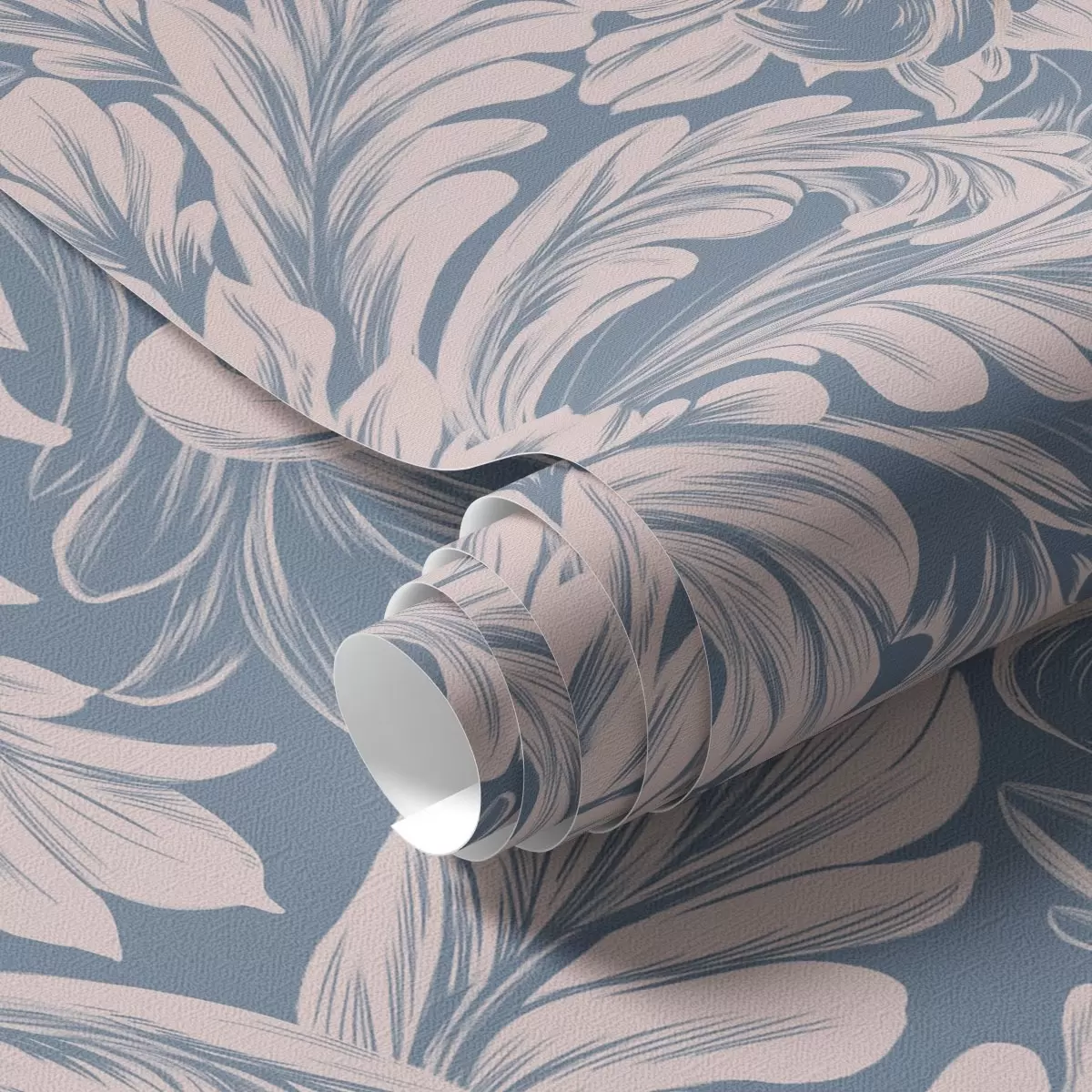 Papel pintado Rizos vegetales en tonos crema sobre fondo azul y gris Nr. a00135v2