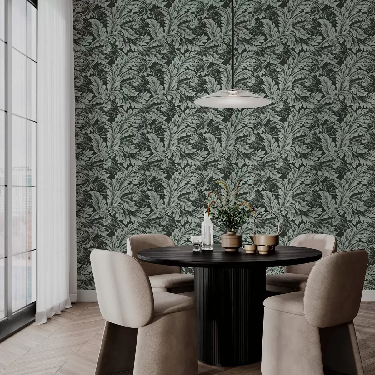 Papel pintado Fondo verde oscuro con rizos color menta Nr. a00135v4