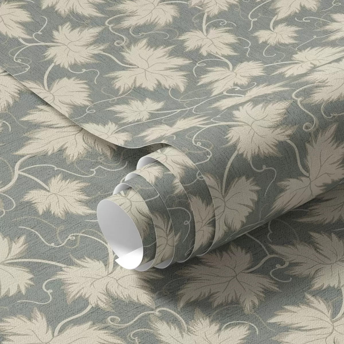 Papel pintado Hoja de parra blanca sobre fondo verde Nr. a00194