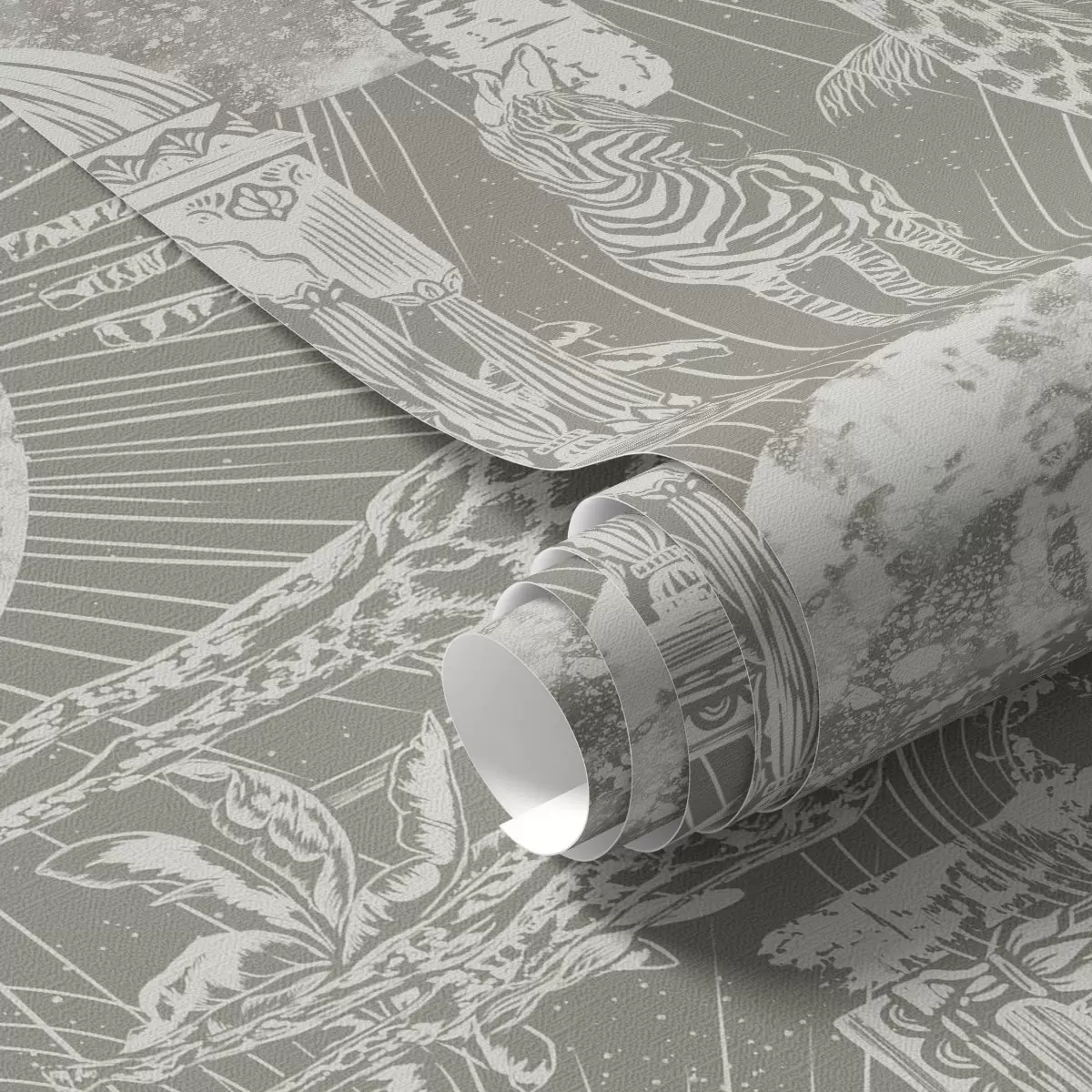Papel pintado Jirafa y cebra sobre un fondo de arquitectura y árboles tropicales Nr. a00276