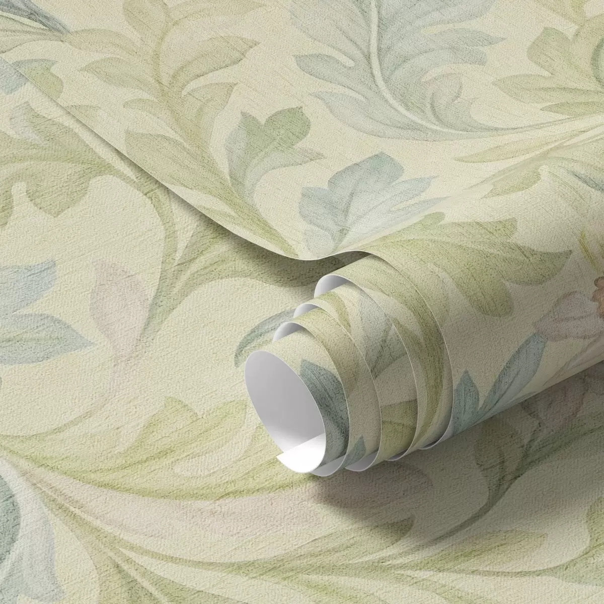 Papel pintado Hojas vintage sobre fondo amarillento, colores suaves Nr. a00277v1