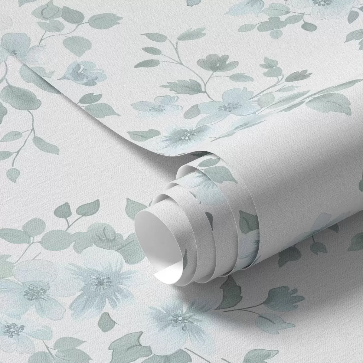 Papel pintado Flores azul pálido sobre fondo blanco, estilo acuarela Nr. a00364
