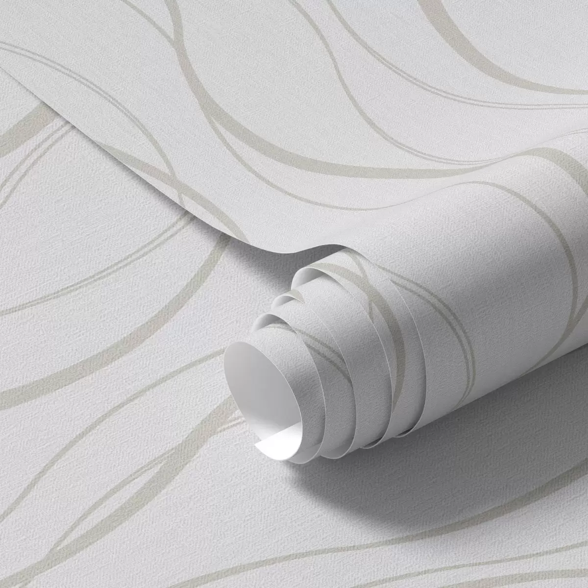 Papel pintado Líneas abstractas onduladas de color beige sobre fondo blanco Nr. a00480