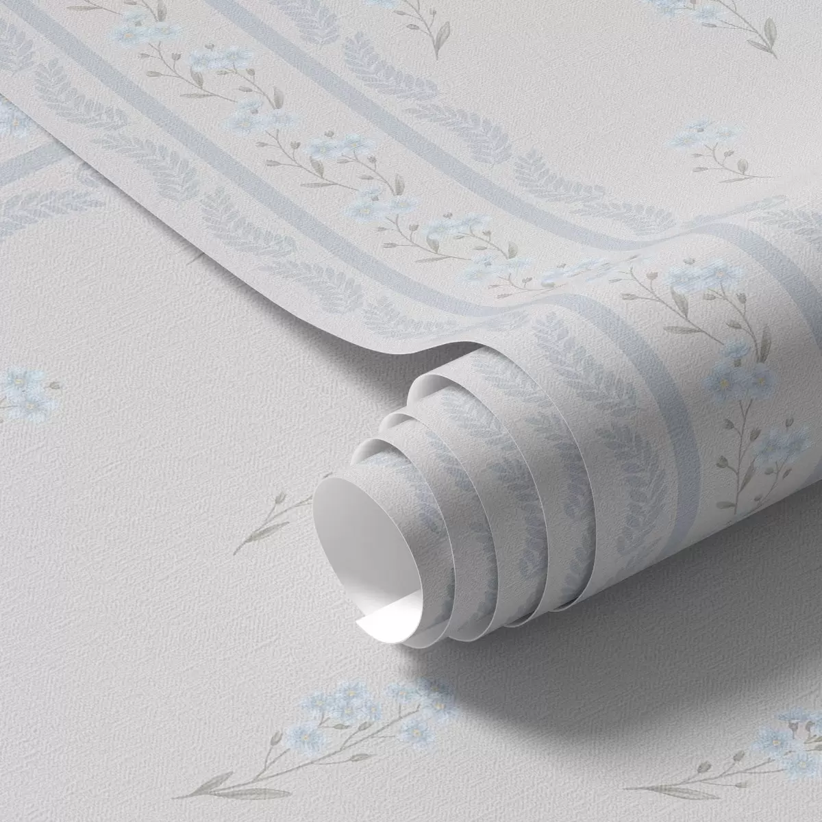 Papel pintado Fondo blanco con flores azules y raya decorativa Nr. a00484v1
