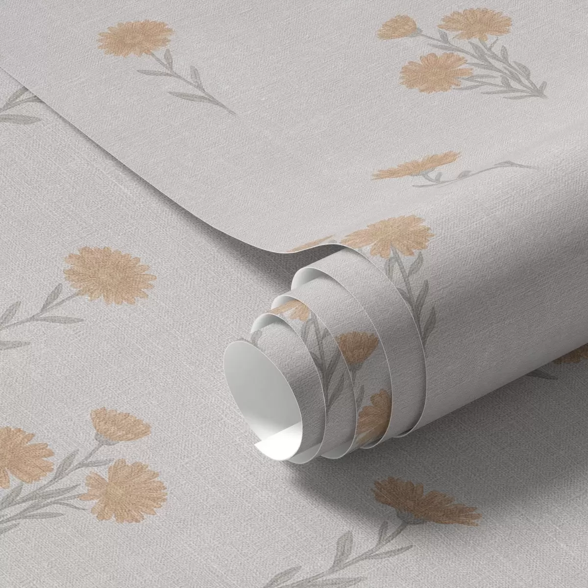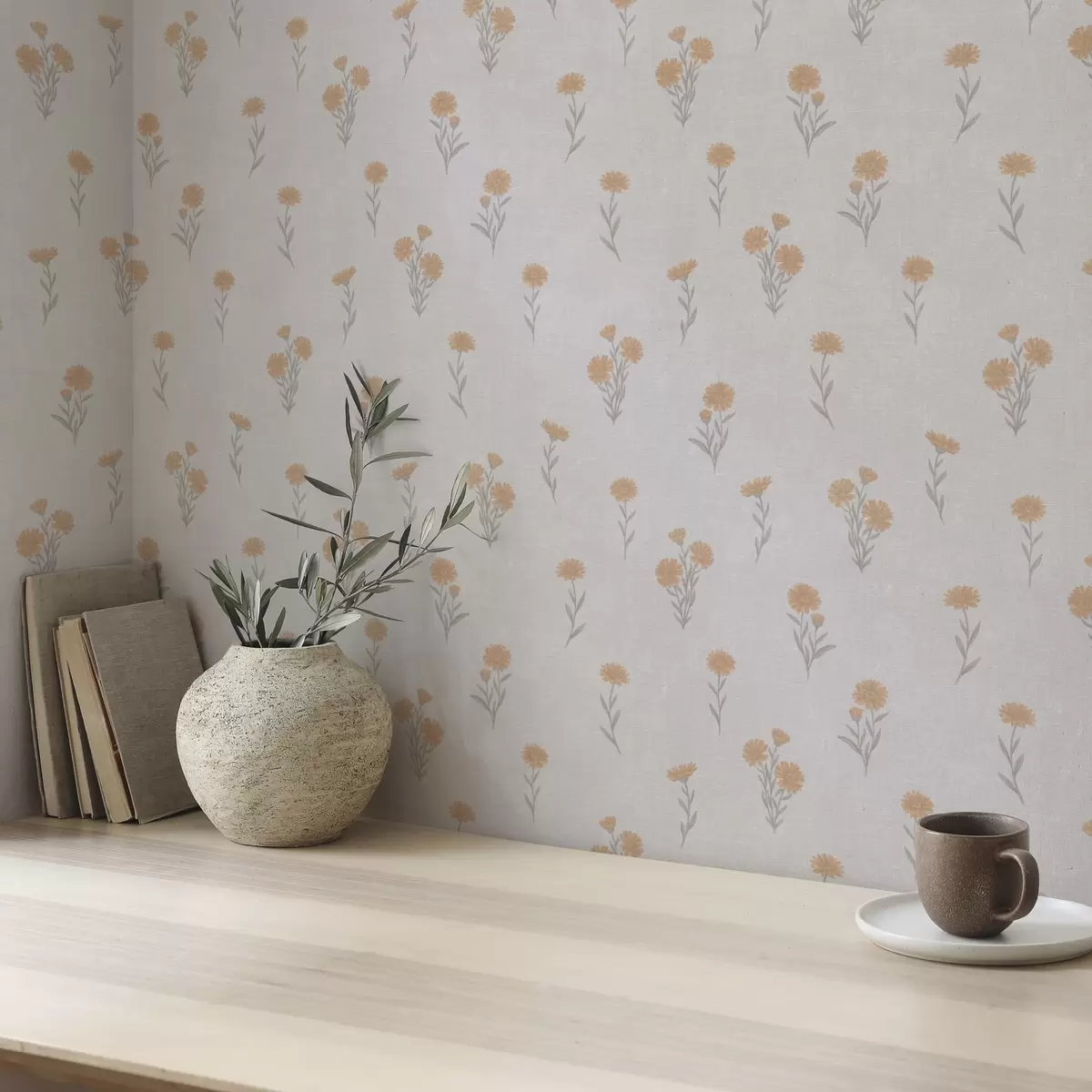 Papel pintado Pequeñas flores naranjas sobre fondo gris claro Nr. a00486
