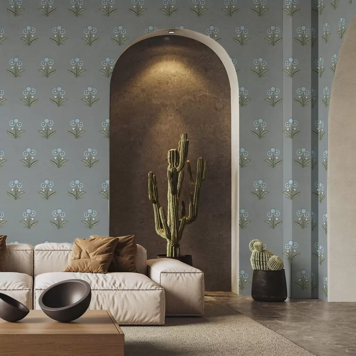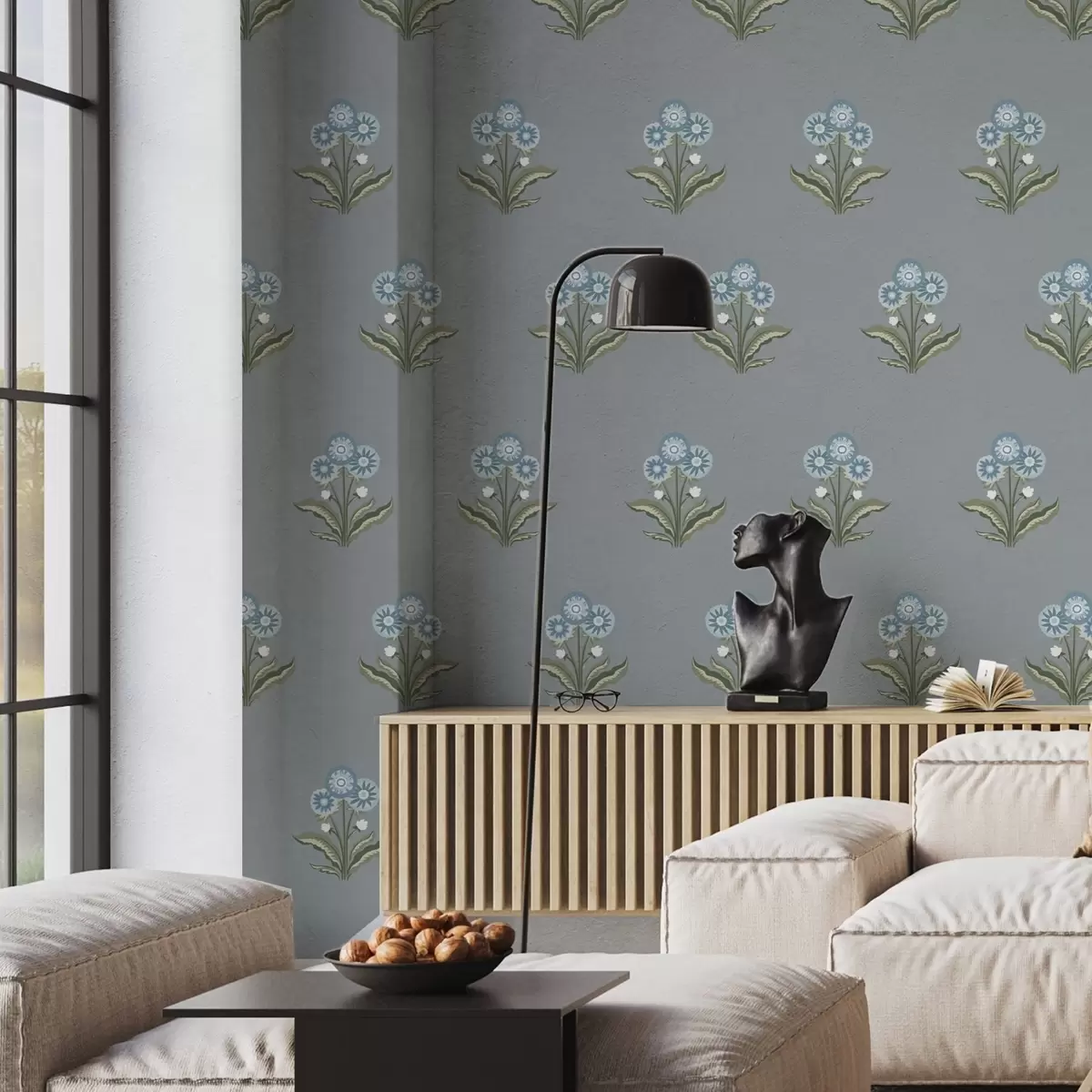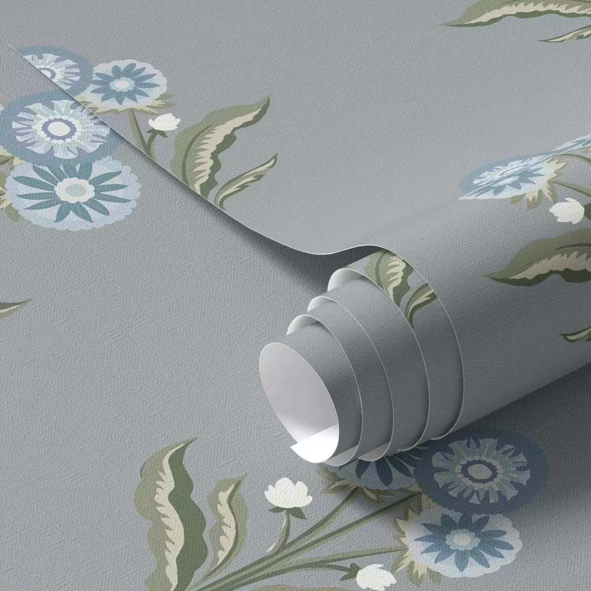Papel pintado Flores estilizadas sobre un fondo gris azulado, paleta de colores fríos Nr. a00494v1