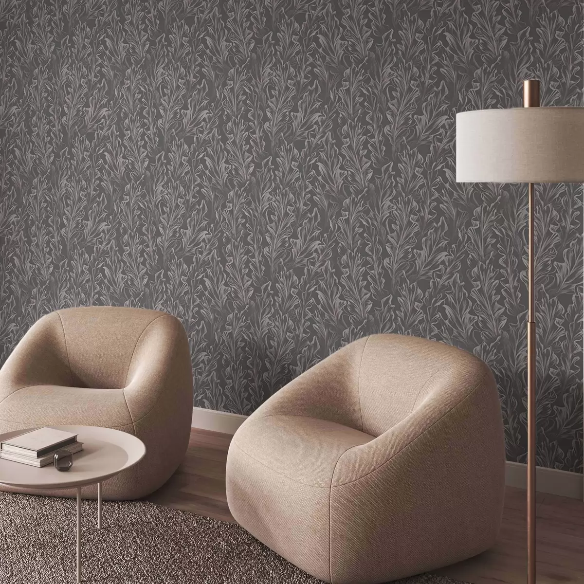 Papel pintado Ondulaciones de hojas fluidas sobre fondo grafito, alto contraste Nr. a00495v1