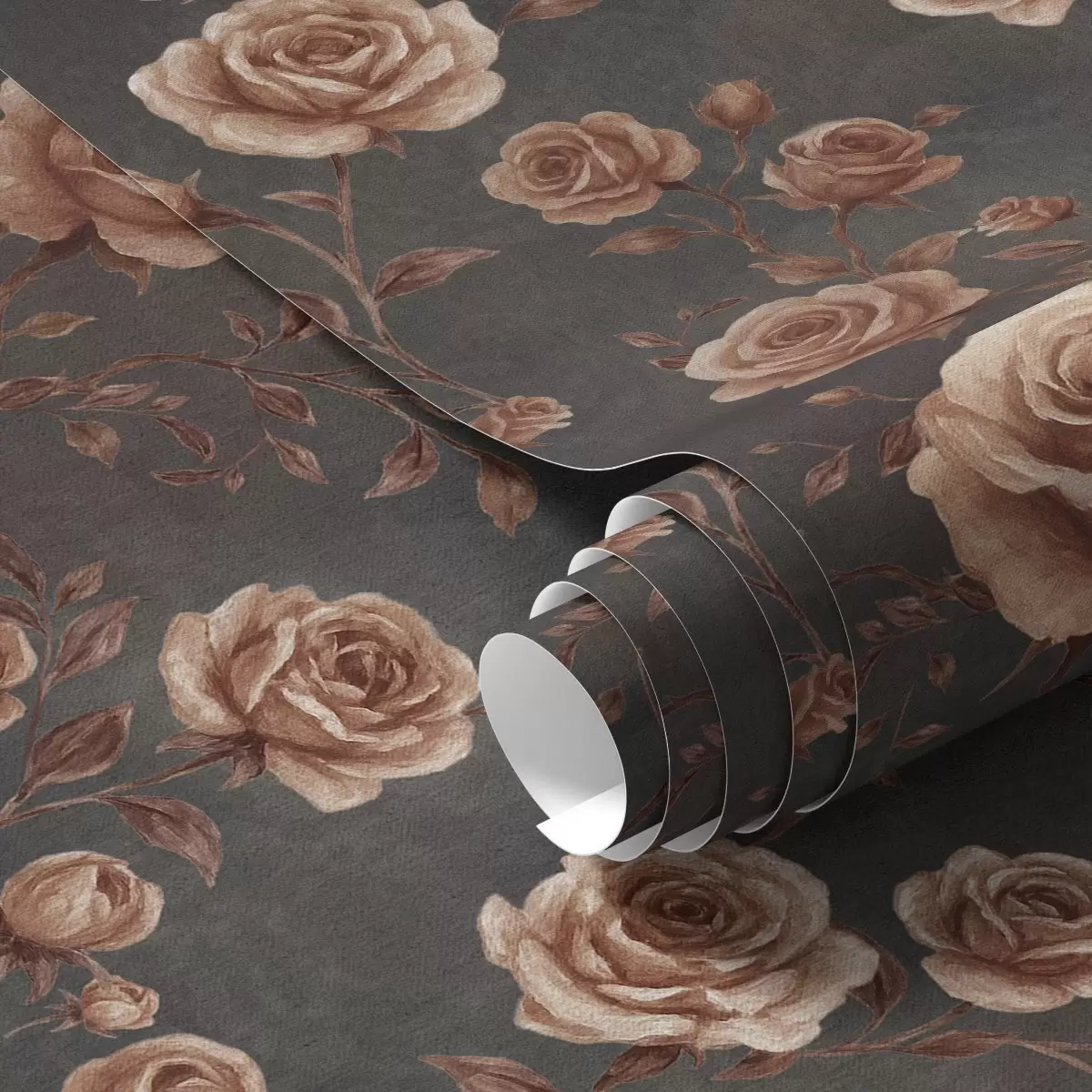 Papel pintado Rosas vintage sobre fondo grafito, paleta terracota Nr. a00497v1