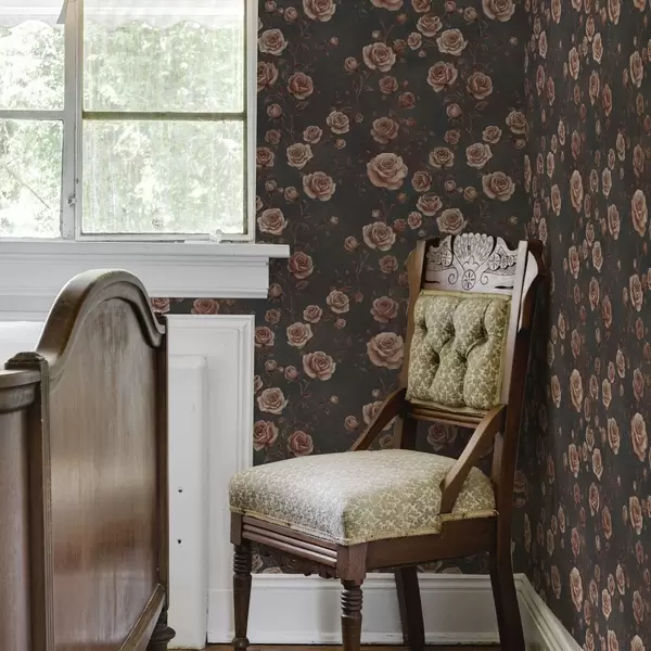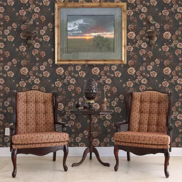 Papel pintado Rosas vintage sobre fondo grafito, paleta terracota Nr. a00497v1