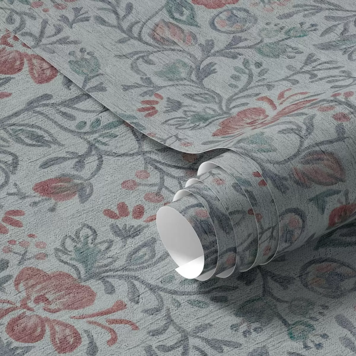 Papel pintado Flores en tonos pastel sobre fondo gris azulado Nr. a00499
