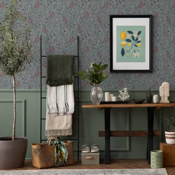 Papel pintado Flores en tonos pastel sobre fondo gris azulado Nr. a00499