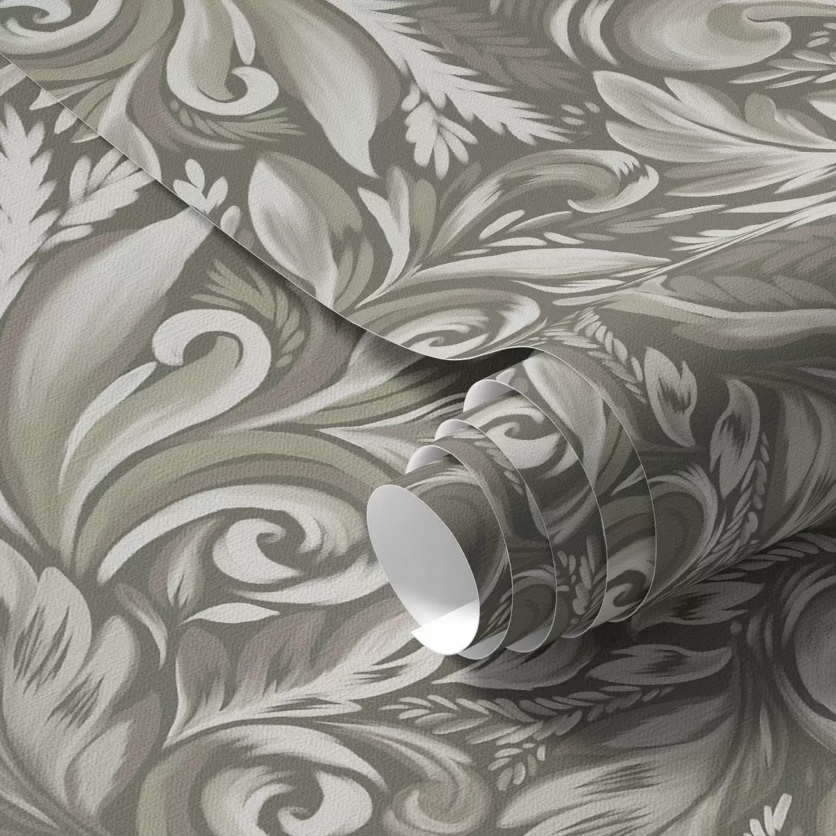 Papel pintado Volutas de acanto en una paleta de colores beige oliva Nr. a00501