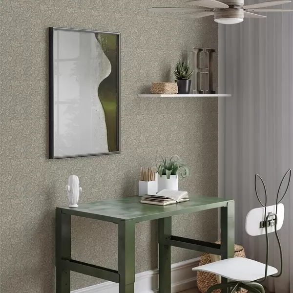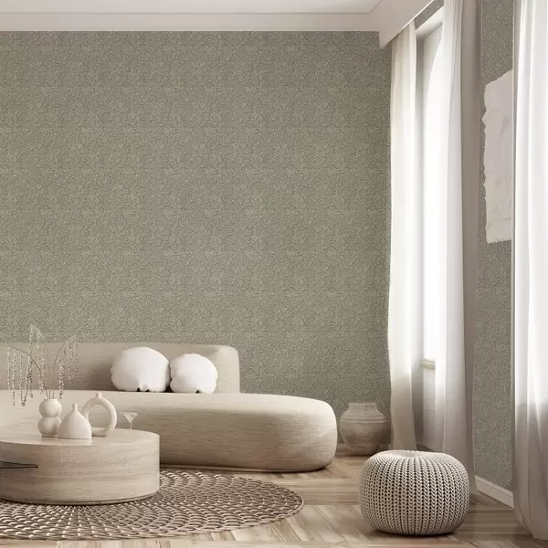 Papel pintado Estilo Morris: ramas beige sobre fondo gris verdoso Nr. a00569