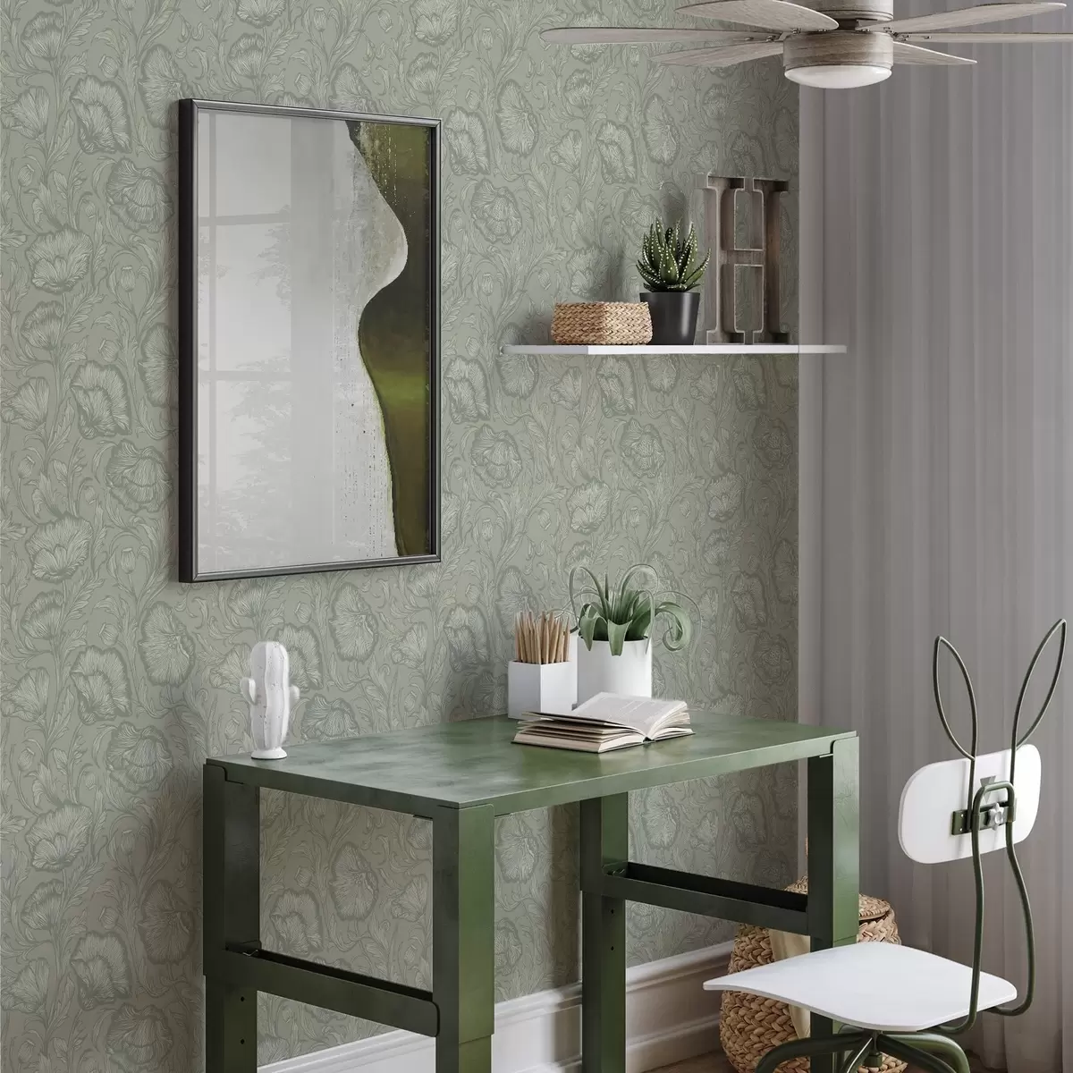 Papel pintado Amapolas en línea sobre un fondo gris verdoso Nr. a00572v1