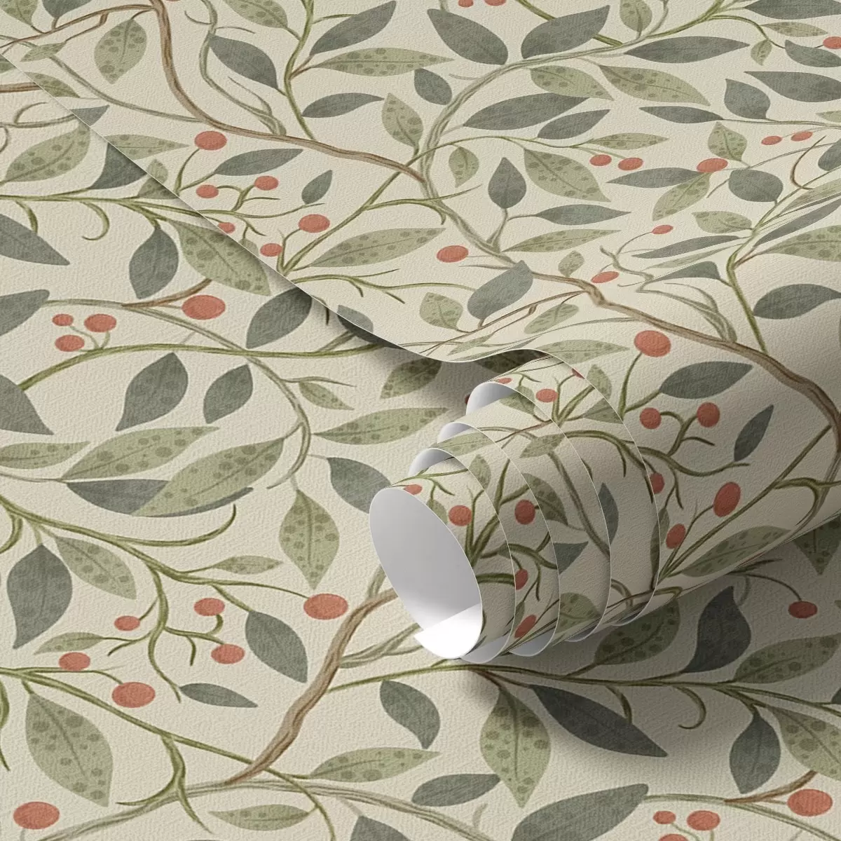 Papel pintado Ramas de olivo con bayas sobre un fondo cálido y claro Nr. a00573