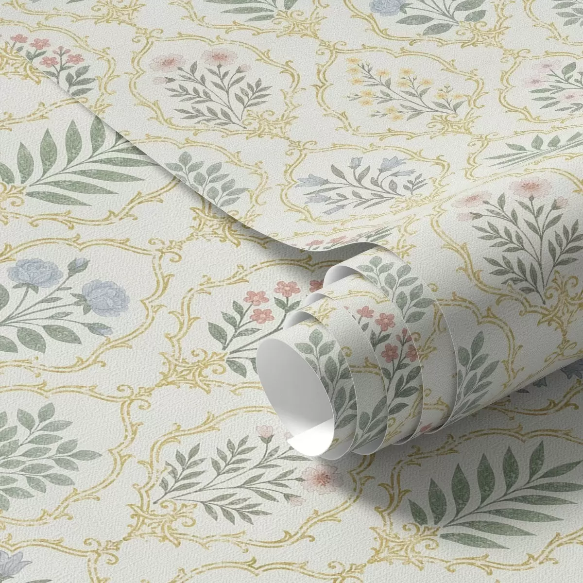 Papel pintado Medallones botánicos en celosía, tonos pastel Nr. a00579