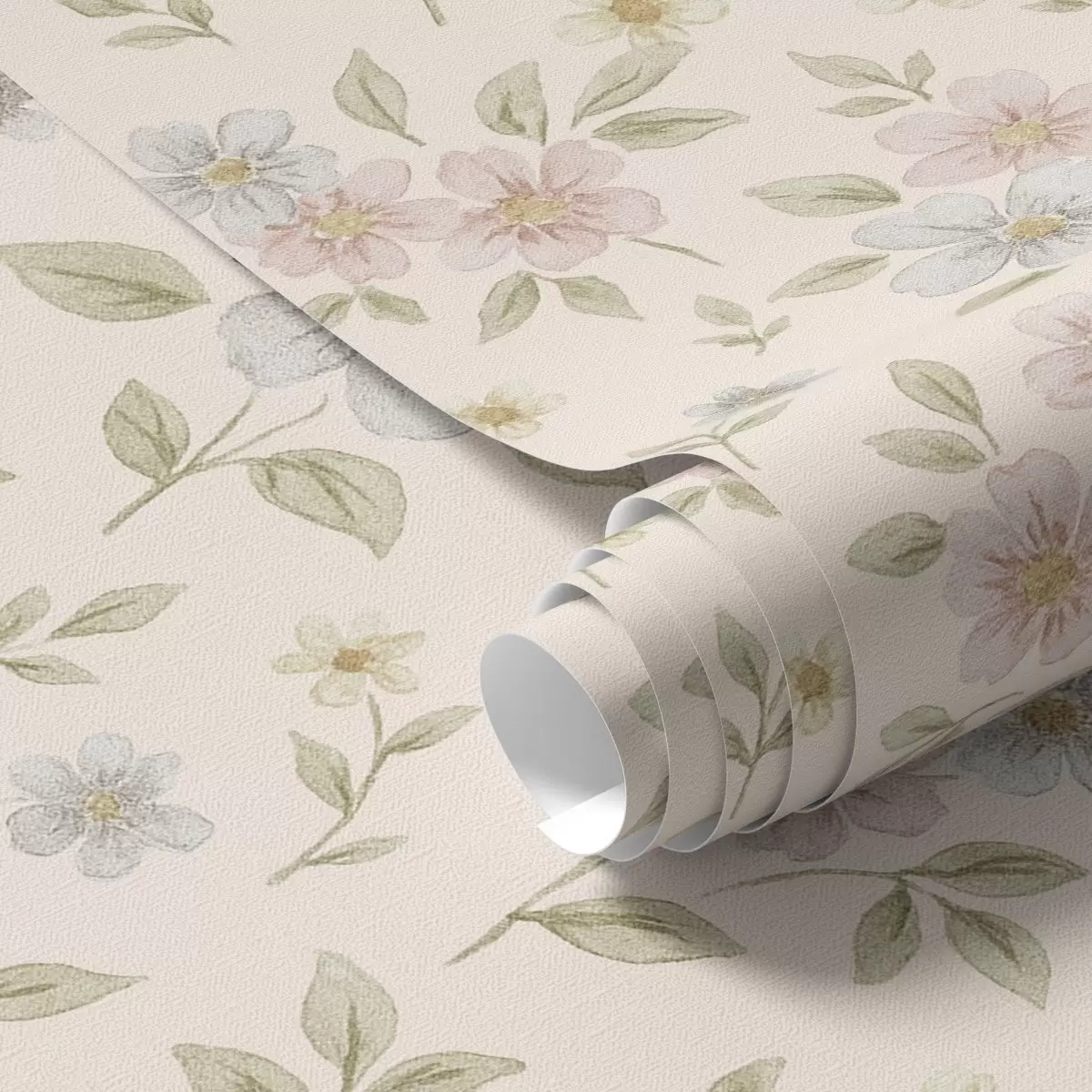 Papel pintado Flores de campo en tonos pastel sobre fondo crema Nr. a00596