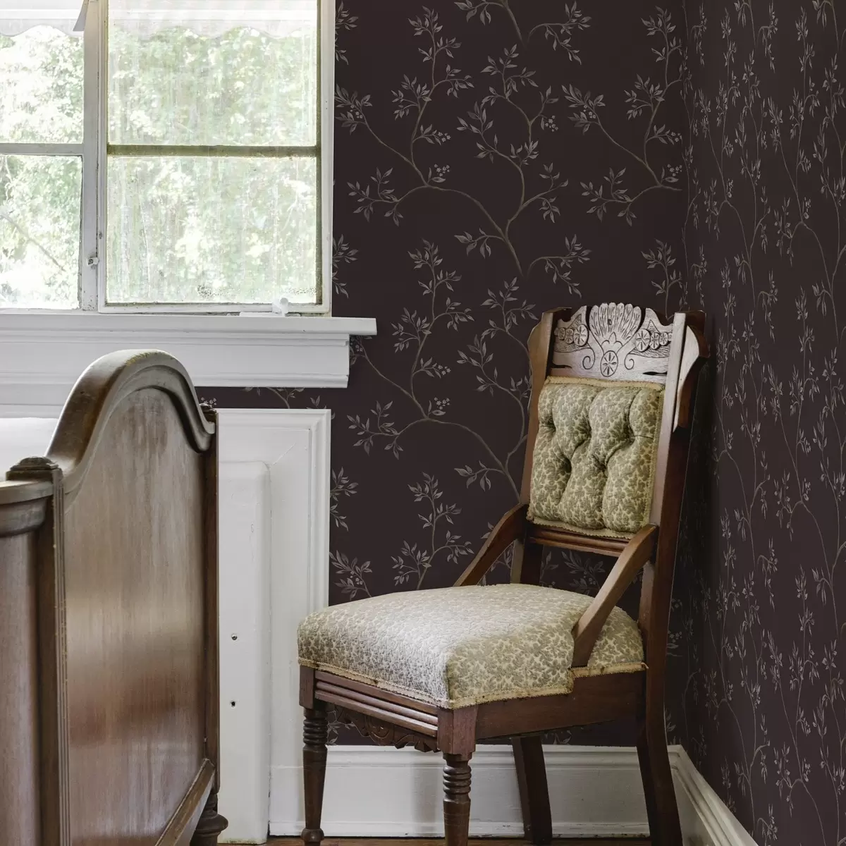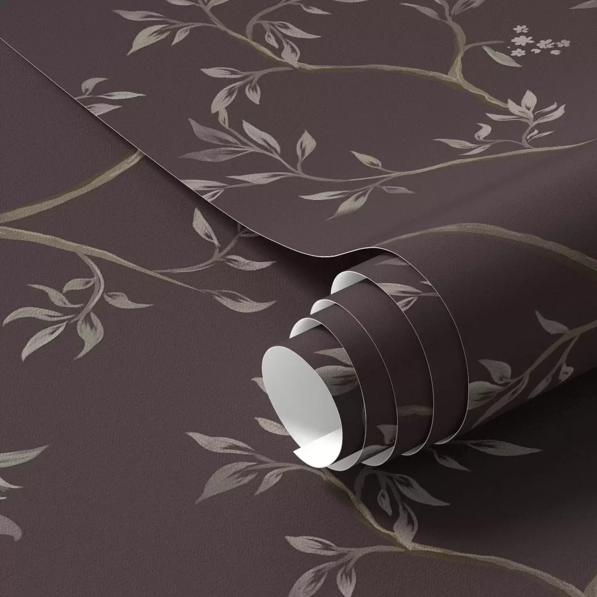 Papel pintado Delicadas ramas frondosas sobre un rico fondo ciruela Nr. a00597v2