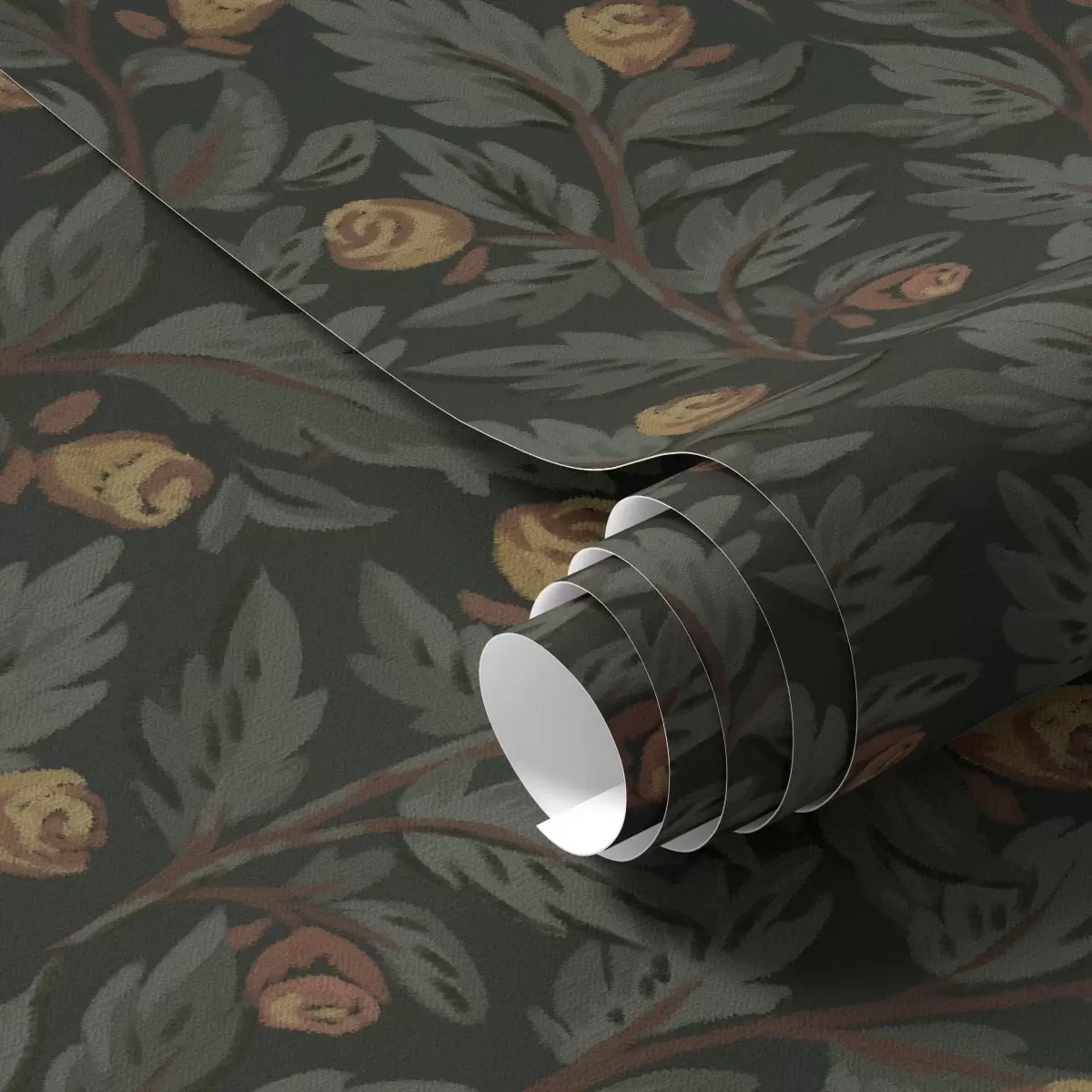Papel pintado Estampado floral oscuro con capullos y hojas amarillos Nr. a00598