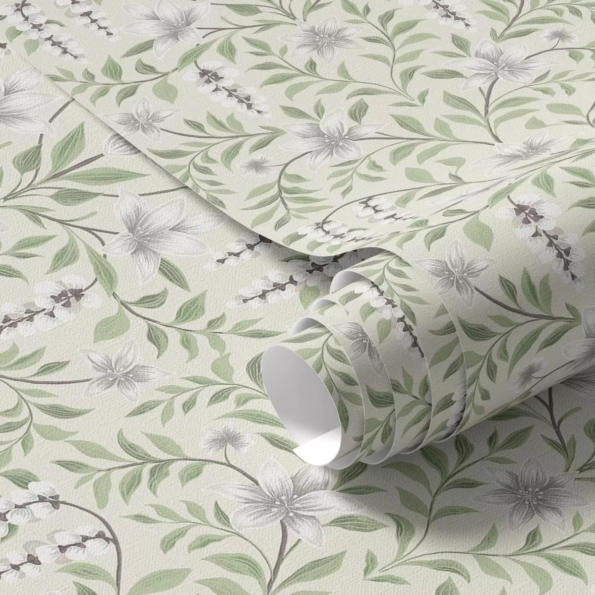 Papel pintado Adorno ligero en forma de vid con flores blancas, simétrico Nr. a00609