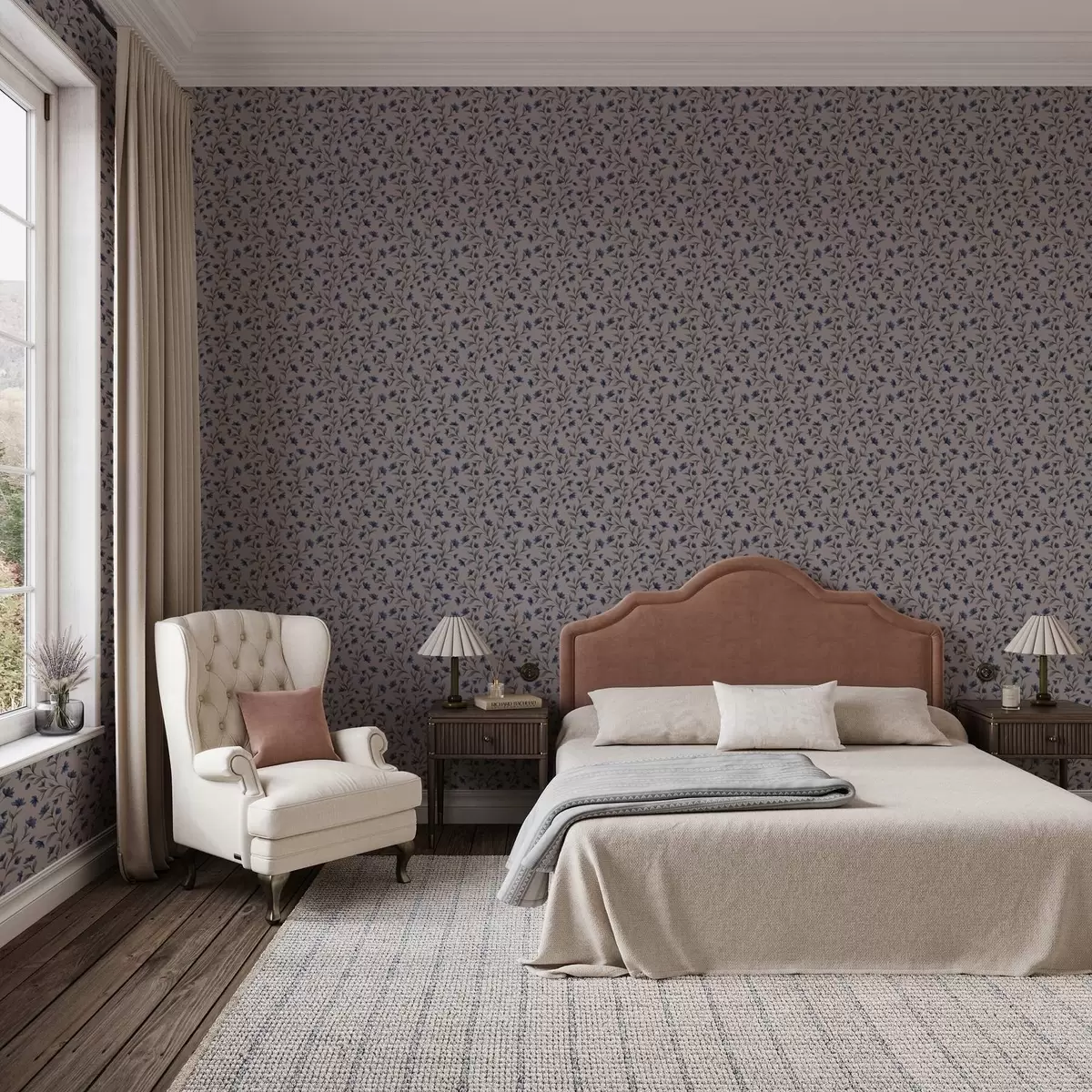 Papel pintado Campanillas sobre fondo rosa empolvado Nr. a00622v2