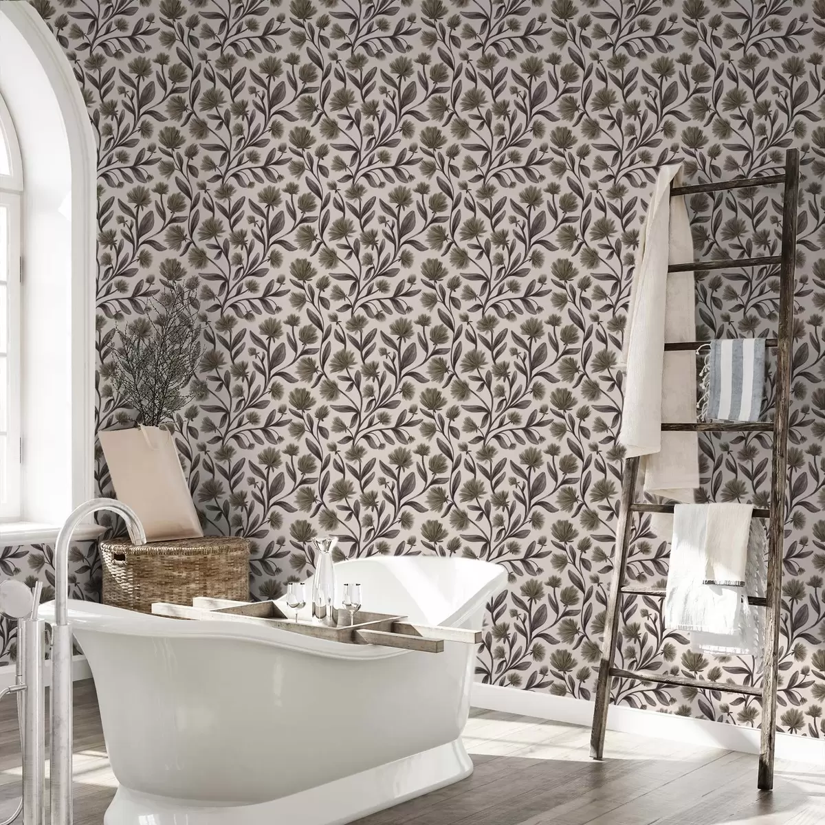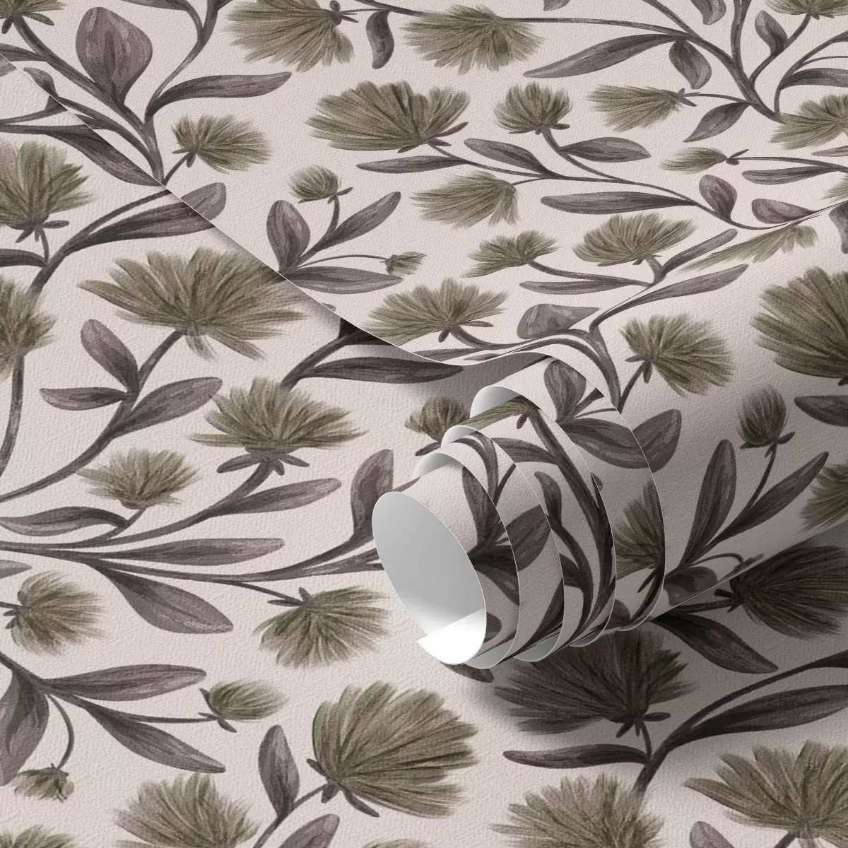 Papel pintado Flores silvestres en tonos gris oliva sobre fondo crema Nr. a00623v1