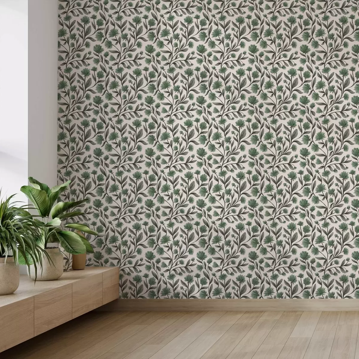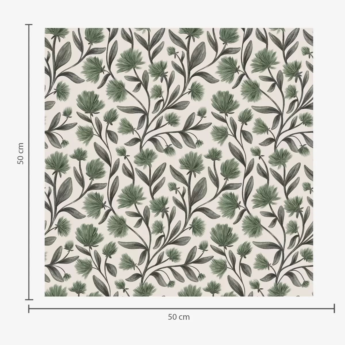 Papel pintado Flores silvestres en una paleta verde sobre fondo crema Nr. a00623v3
