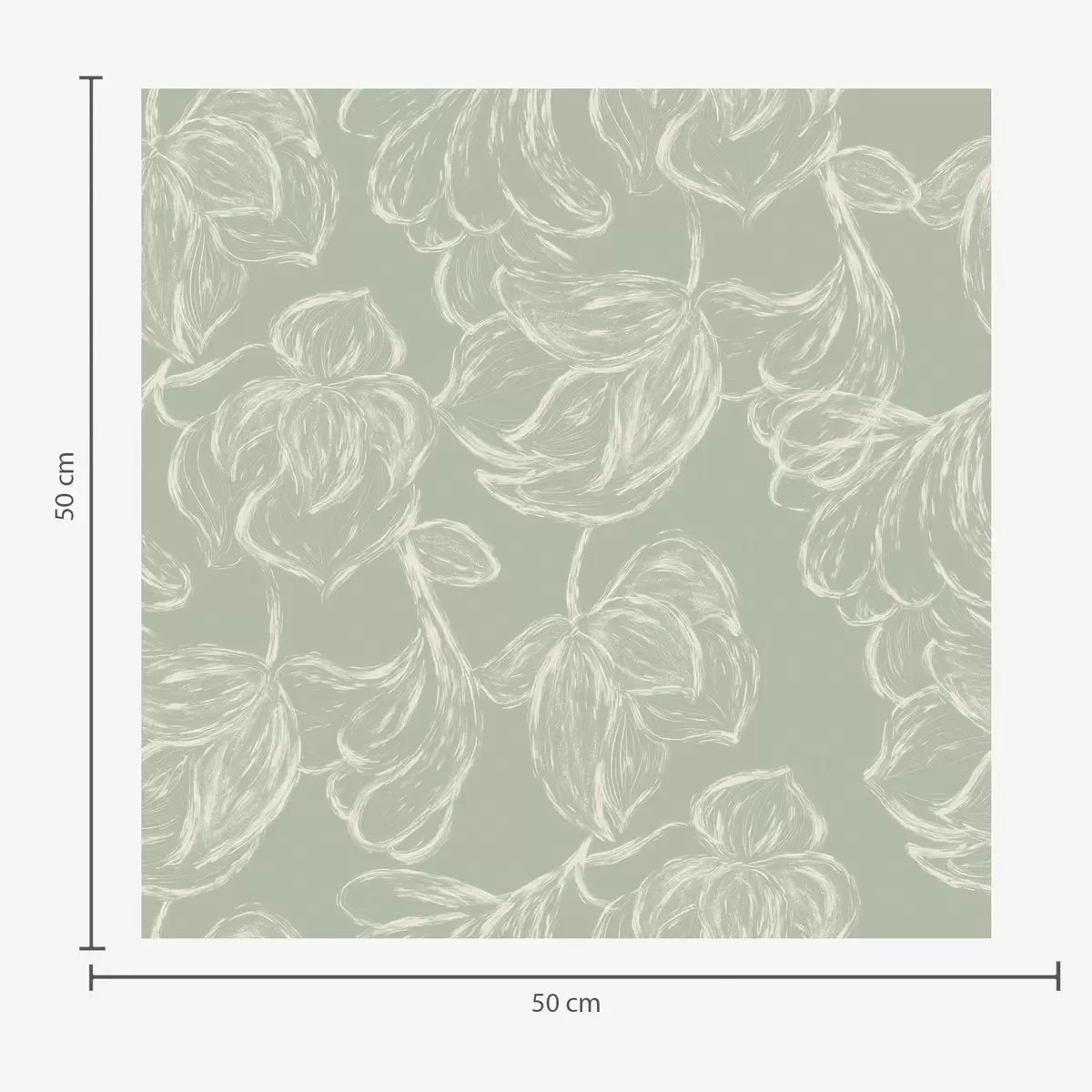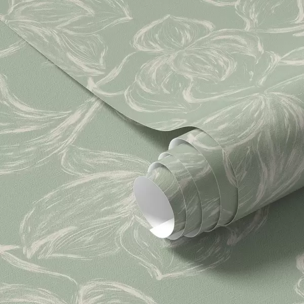 Papel pintado Flores grandes lineales, trazos de tiza sobre fondo salvia Nr. a00625v1
