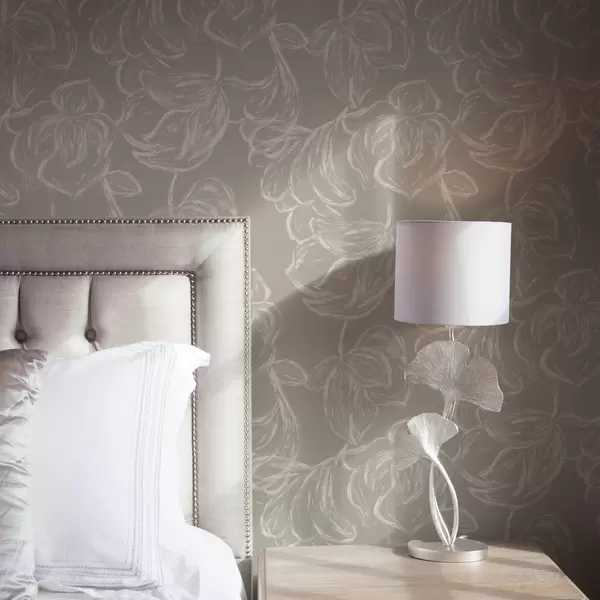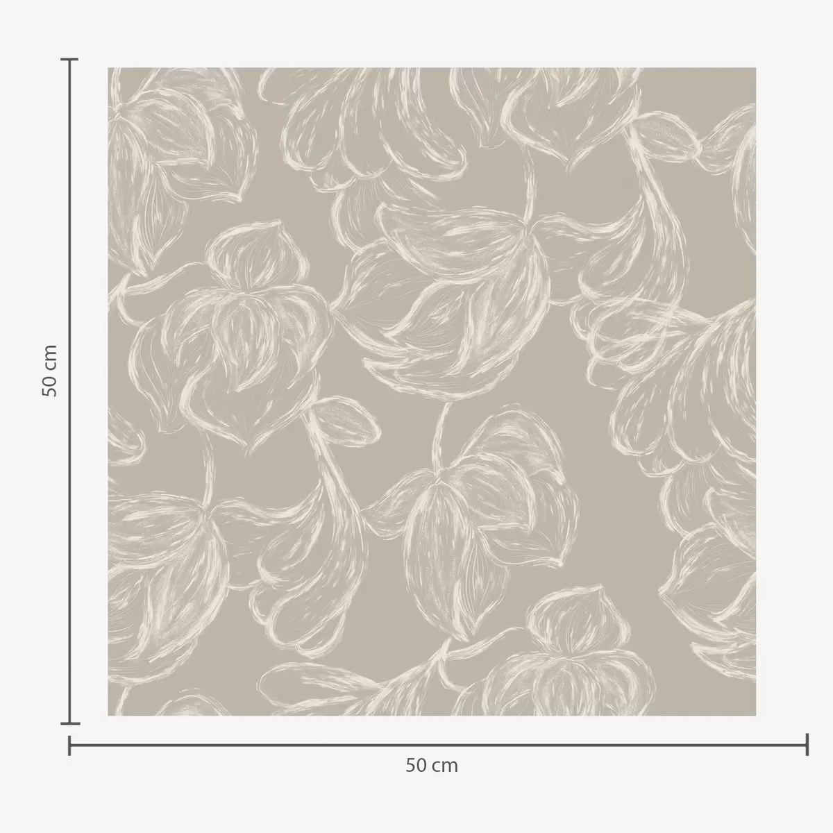 Papel pintado Flores con contorno en crema sobre un fondo marrón grisáceo cálido Nr. a00625v2