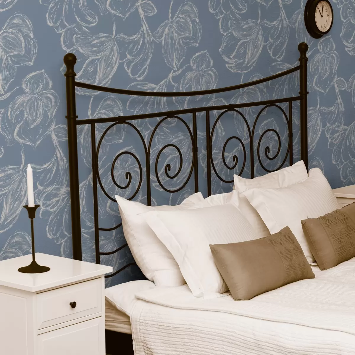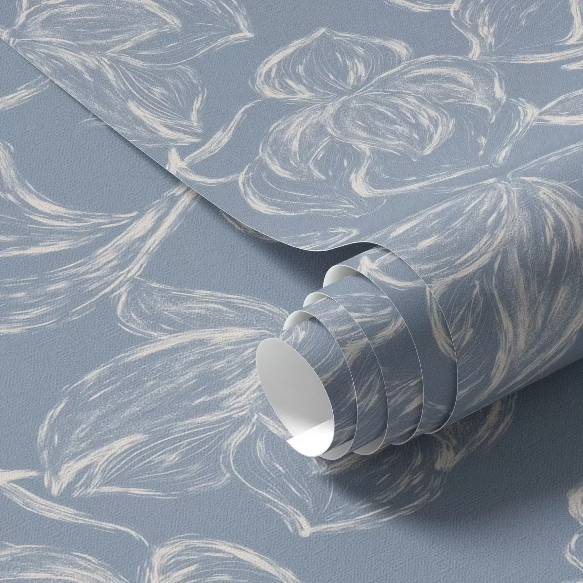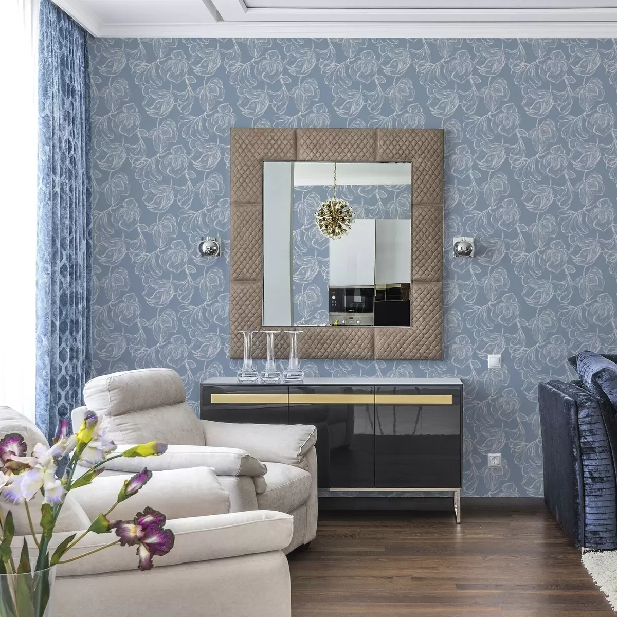 Papel pintado Fondo azul claro con flores de contorno calcáreo Nr. a00625v3