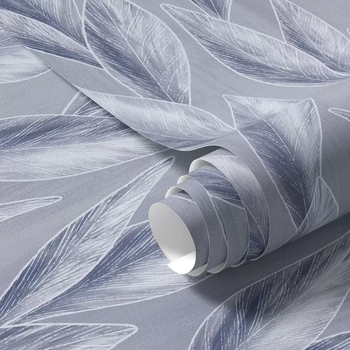 Papel pintado Hojas azul plateadas sobre fondo gris azulado, patrón gráfico Nr. a00627