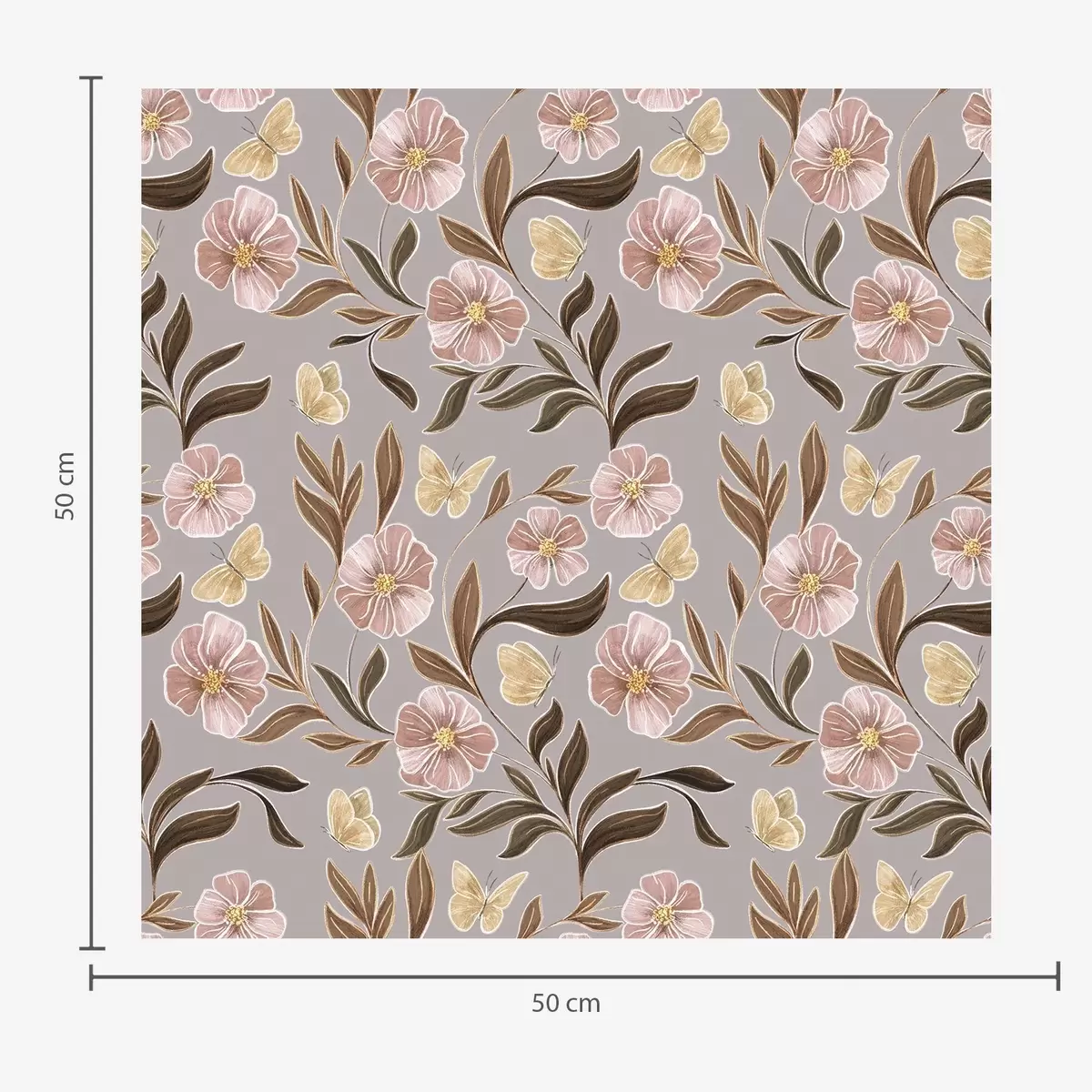 Papel pintado Flores rosas y mariposas sobre un fondo gris-beige Nr. a00633