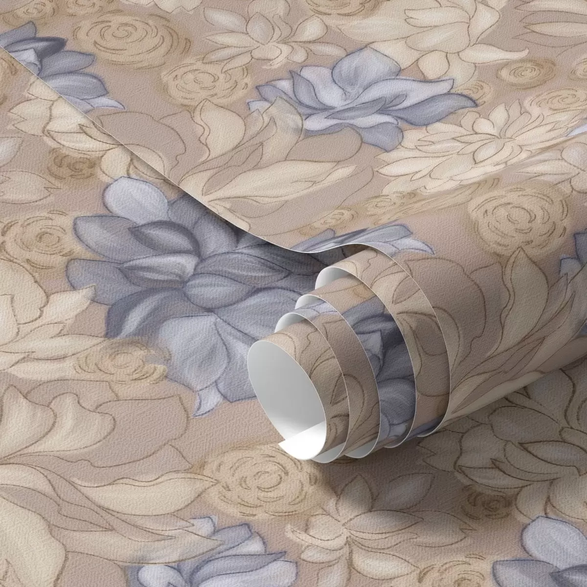 Papel pintado Flores de color crema y azul sobre un fondo beige cálido Nr. a00634v1