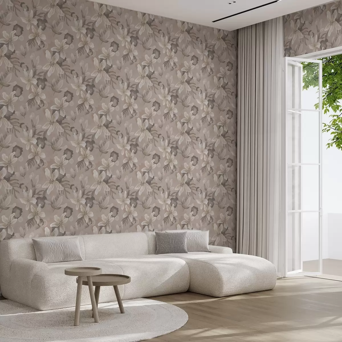 Papel pintado Grandes flores beige con manchas abstractas de acuarela Nr. a00635
