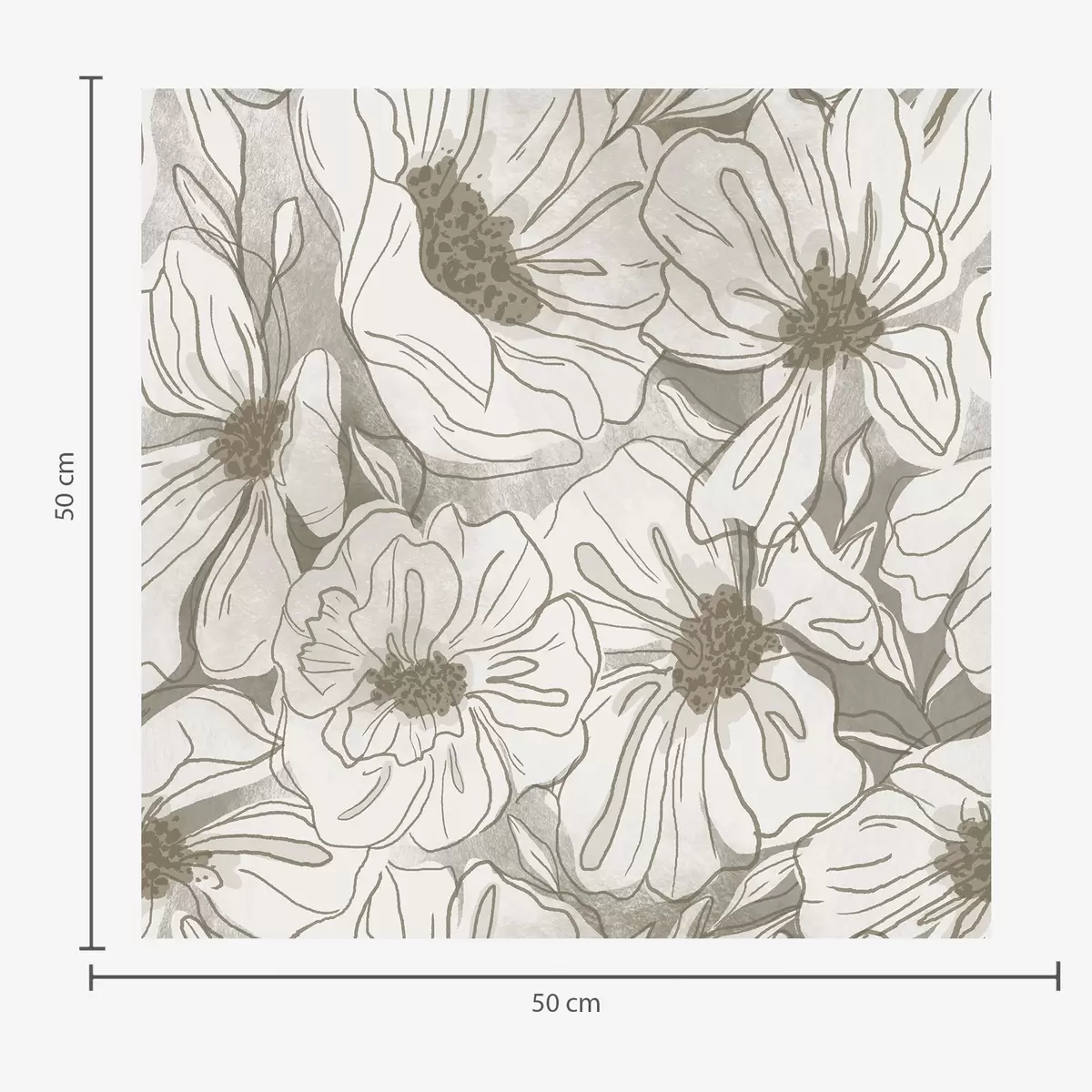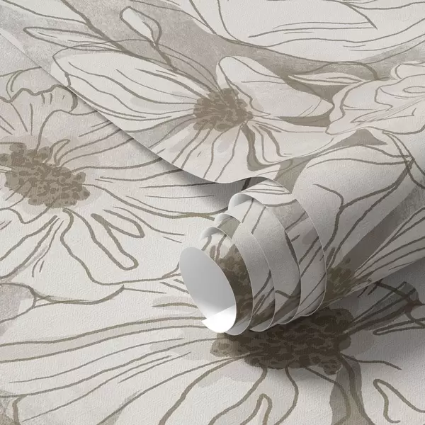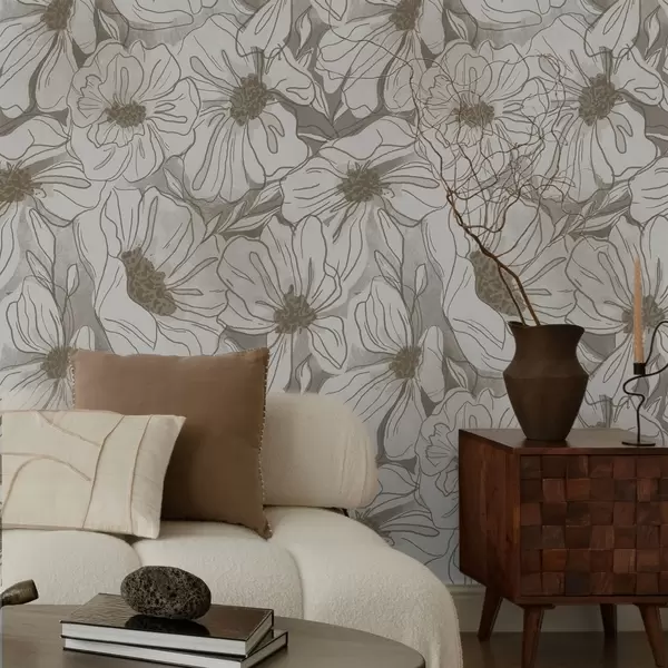 Papel pintado Flores lineales en una paleta monocromática de tonos beige y gris Nr. a00636