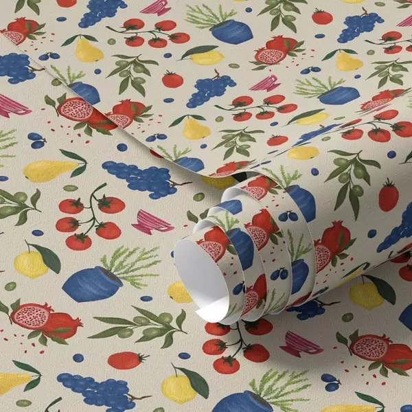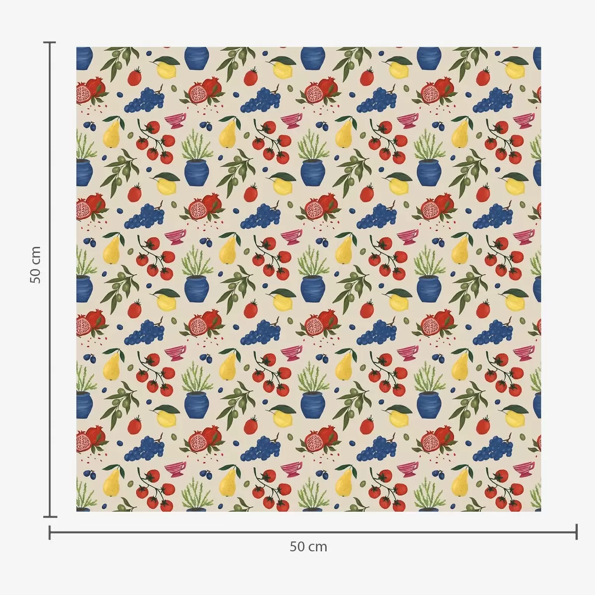 Papel pintado Patrón vibrante con frutas, ramas y jarrones Nr. a00637