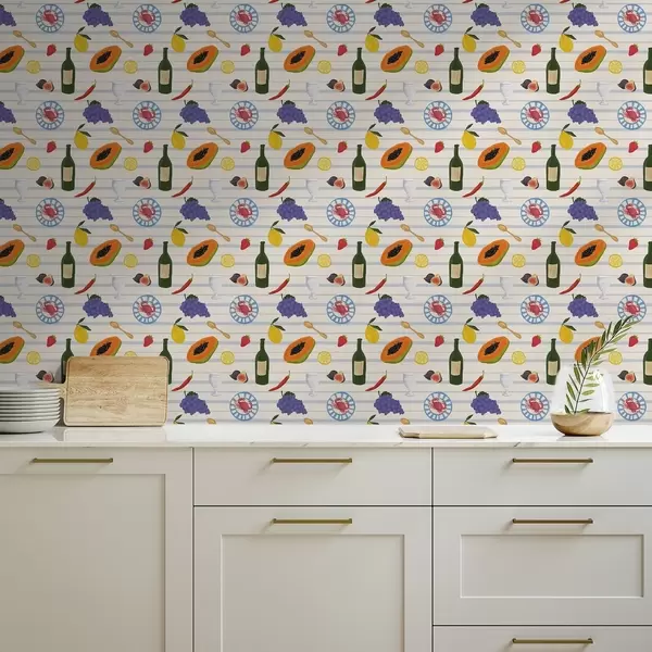 Papel pintado Lámina de cocina con frutas, vasos y platos Nr. a00638
