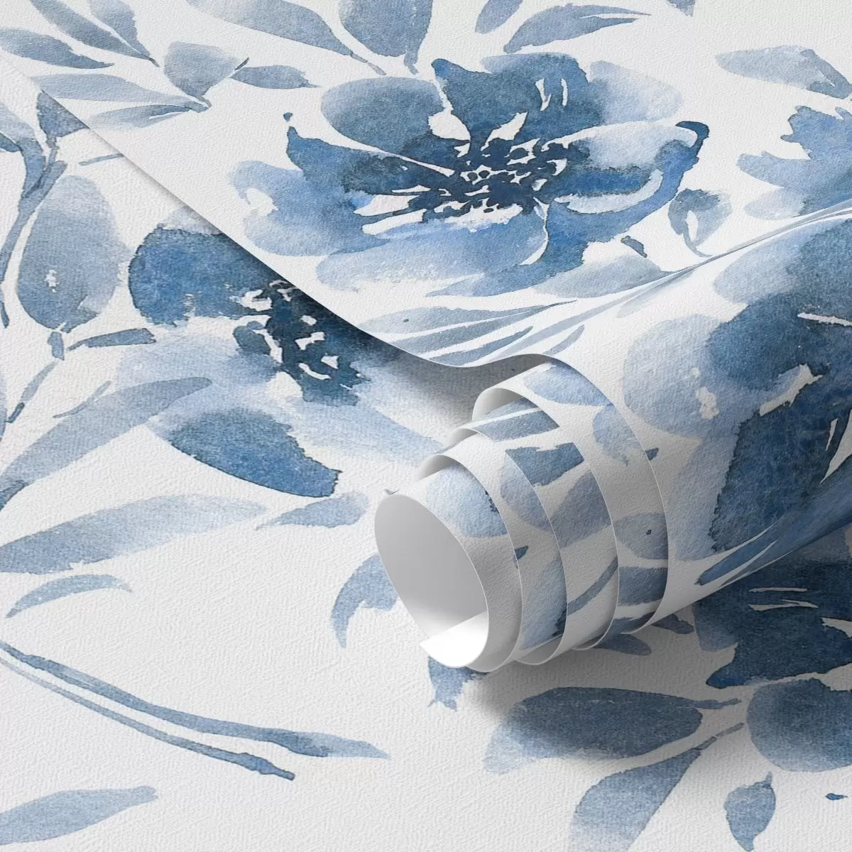 Papel pintado Peonías índigo pintadas con acuarela sobre fondo blanco Nr. a00641